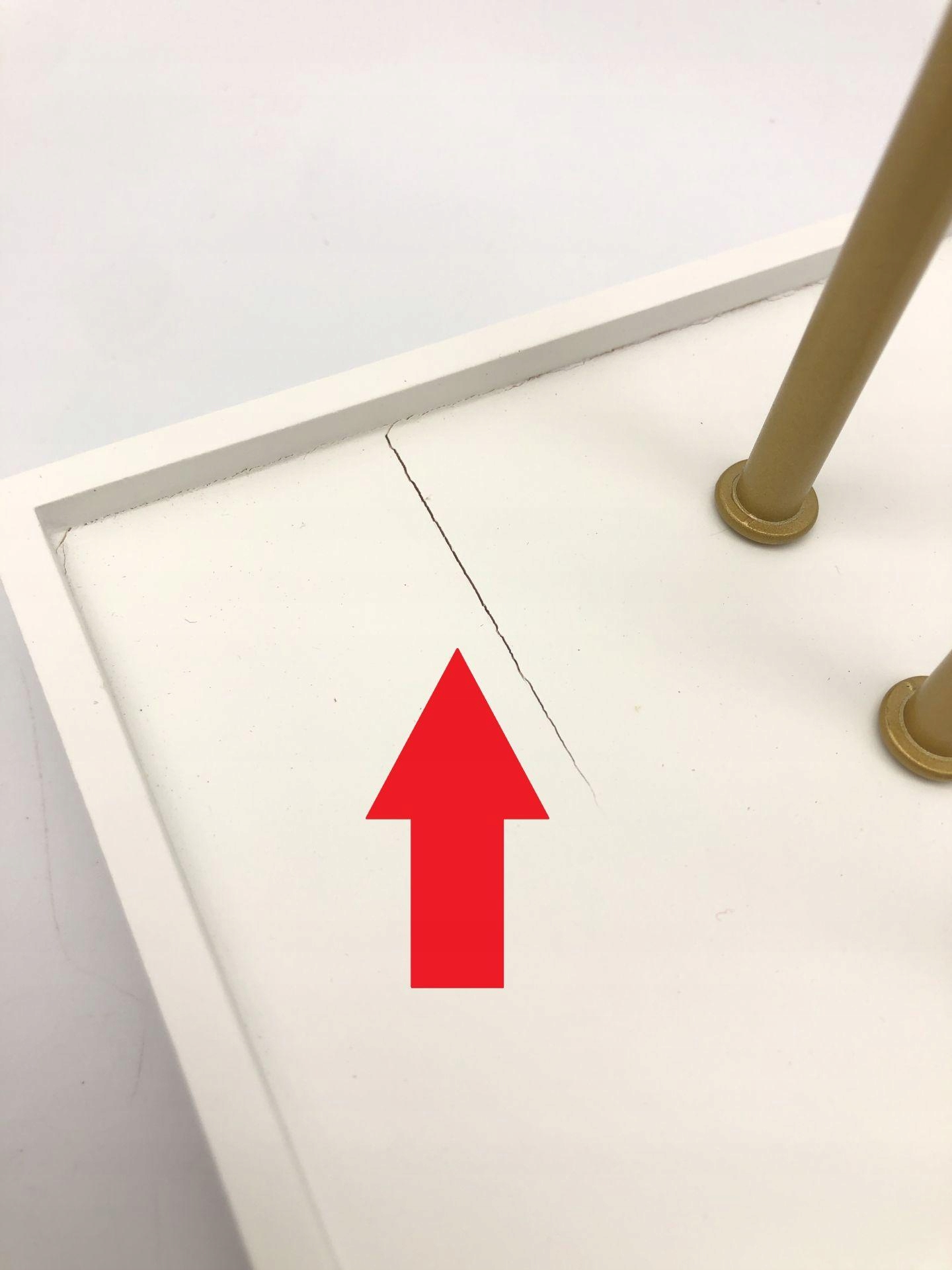 потрескавшаяся основа - отмечена стрелкой