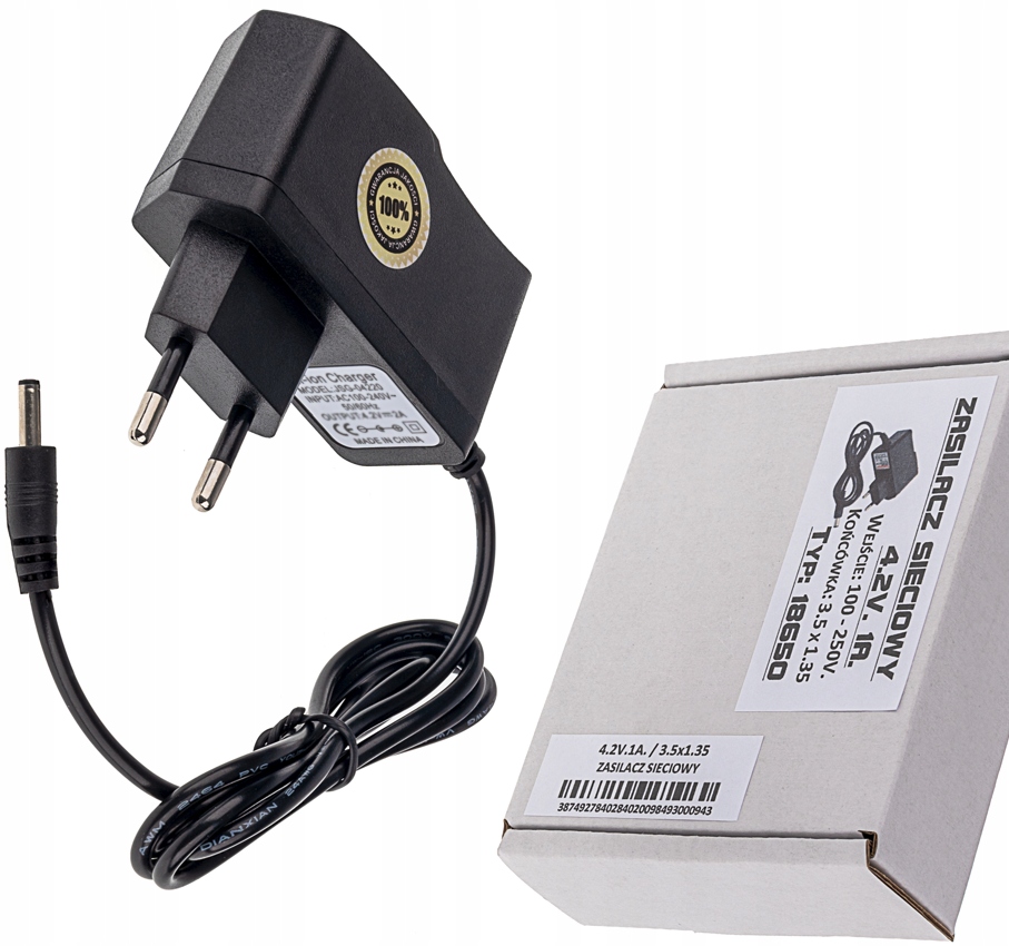Над миниатюрой фотографии некорректная надпись: MAINS CHARGER POWER SUPPLY 4,2V 0,5A (3,5x1,35) Это системная ошибка Allegro. На этом аукционе доступны следующие зарядные устройства: СЕТЕВОЕ ЗАРЯДНОЕ УСТРОЙСТВО ПИТАНИЯ 4,2 В, 1 А. (3,5х1,35)
