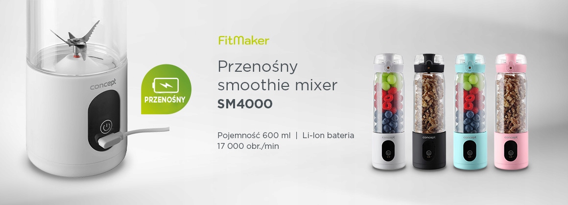 Смузи Fitmaker Concept SM4000 предназначен для любого, кто ведет активный образ жизни и хочет легко и быстро готовить здоровые коктейли всегда и везде. Он имеет интегрированную литий-ионную батарею, благодаря которой вы не зависите от присутствия гнезда. Благодаря своему компактному и легкому дизайну, он удобно поместится в рюкзак или кошелек, так что вы можете взять его с собой повсюду - в путешествии, на работу или для упражнений.
