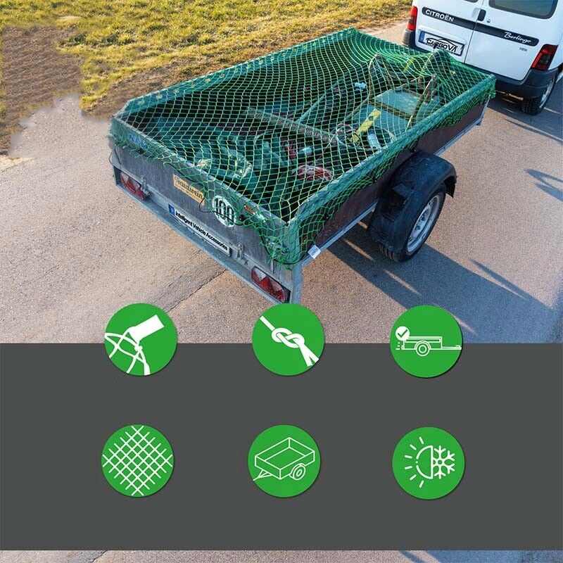 Сетка для прицепа имеет размеры 2 x 3 м, что делает ее особенно подходящей для прицепов массой до 2000 кг. и максимальные размеры 2х3М