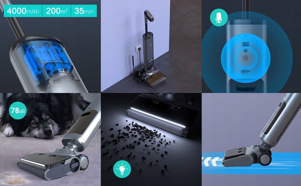 OSOTEK стремится обеспечить больший комфорт и удобство для каждая семья получит высококачественные интеллектуальные продукты и идеальные решения для уборки дома. Беспроводной пылесос для сухой и влажной уборки H200 предназначен для одновременной уборки полов, мытья полов и мытья полов, обеспечивая более тщательную уборку, чем один только робот-пылесос, делая уборку в доме быстрой и легкой и придавая полам великолепный вид.