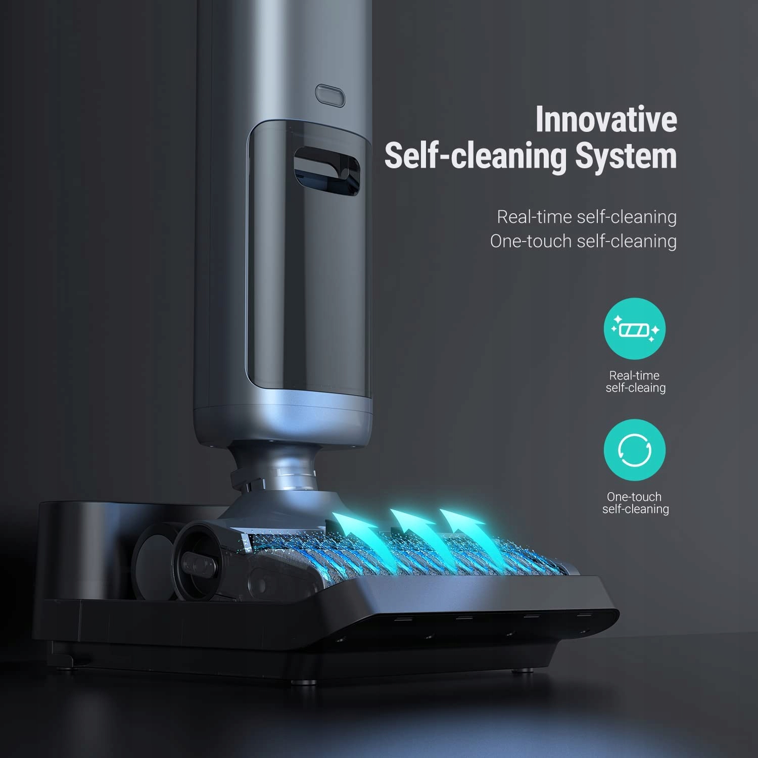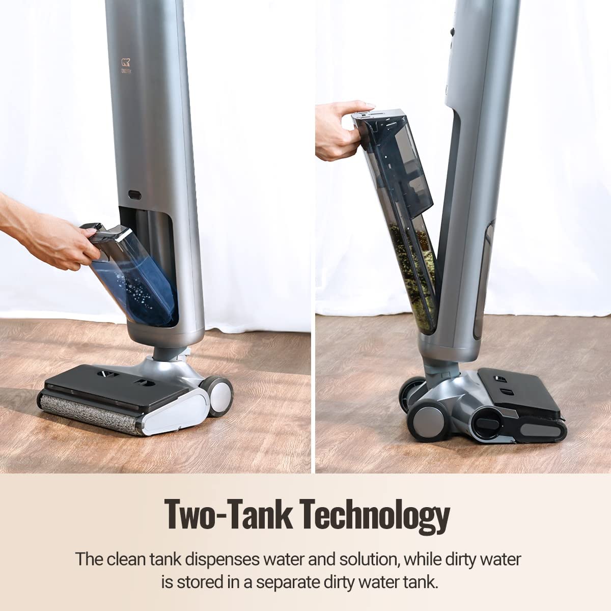 Пылесосьте, мойте шваброй и пол одновременно. Беспроводной пылесос для сухой и влажной уборки с функцией плоской уборки на 180°. Новая технология роликовой щетки для очистки от края до края. Удобство и простота использования для уборки всего дома. Самоочищающийся валик щетки разговаривает и очищается сам. Двойные резервуары для воды большой емкости. Умный светодиодный дисплей и напольное освещение. Тихий во время работы