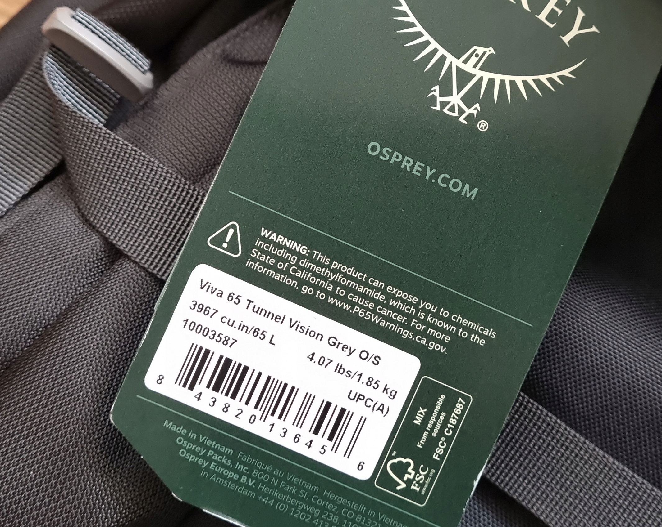 OSPREY Viva 65 — НОВЫЙ женский экспедиционный рюкзак Tunnel Vision серого цвета