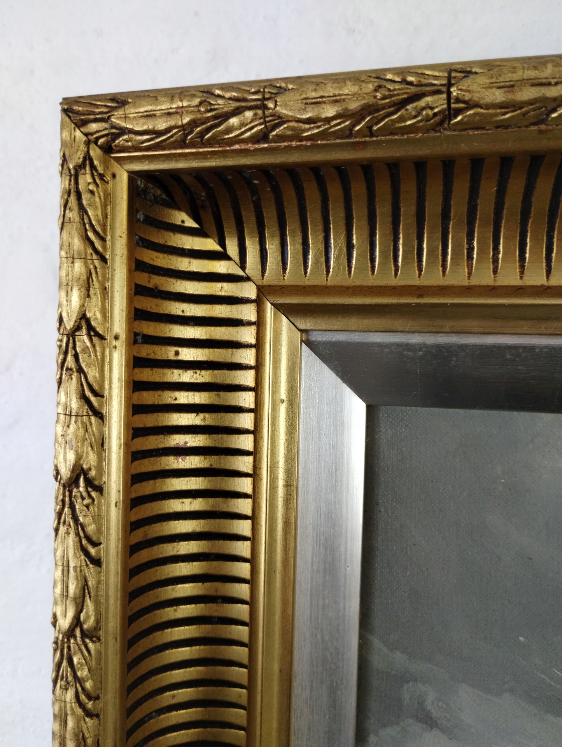 Рама выполнена из дерева и украшена золотым и серебряным напылением. Он декоративен и имеет незначительные дефекты или повреждения. К таким незначительным дефектам могут относиться царапины, потертости и другие признаки износа, которые не оказывают серьезного влияния на общий внешний вид, но могут быть заметны при ближайшем рассмотрении.
