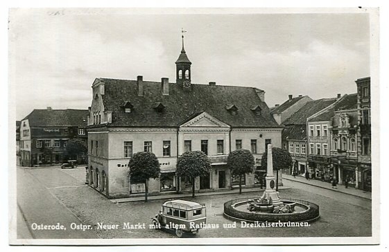 osterode, ostpr. :: neuer mart mit alt rathaus und dreikaiserbrunnen ::: старая открытка, без схемы