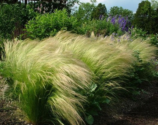 одном из самых красивых низких граний h декоративных трав. Ostnica вырастает примерно до 50 см в высоту. Он имеет деликатные зеленые листья.