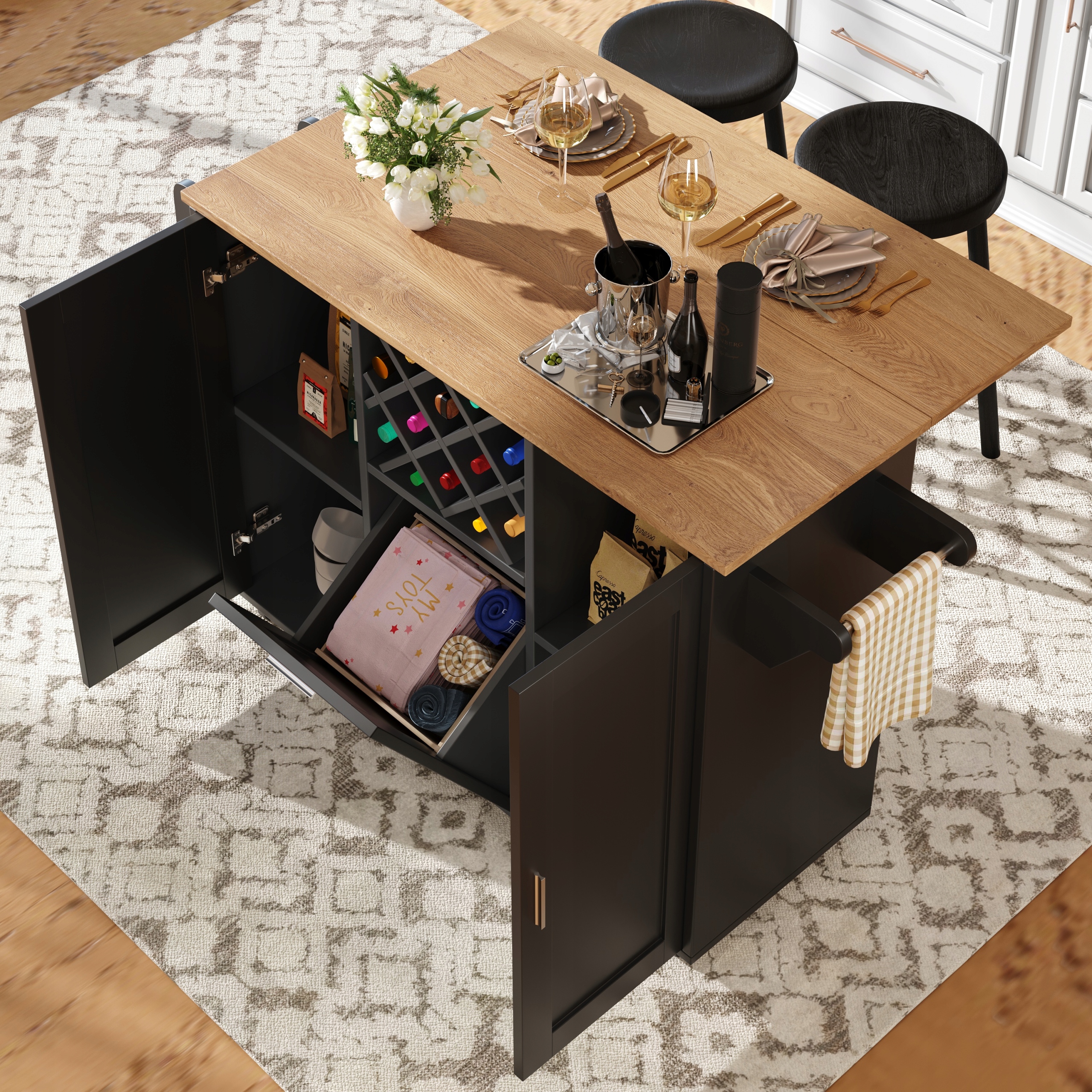 ОСТРІВ КУХОННИЙ, КОЛЯСКА ОБІДНЯ З РОБОЧОЮ СТІЛЬНИЦЕЮ 138Х43(76)Х92 СМ ЧОРНА