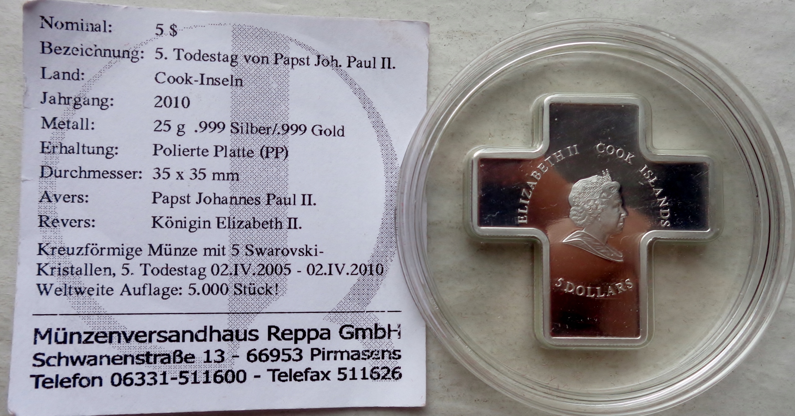 Острови Кука - $5 - 2010 - Іван Павло II - срібло