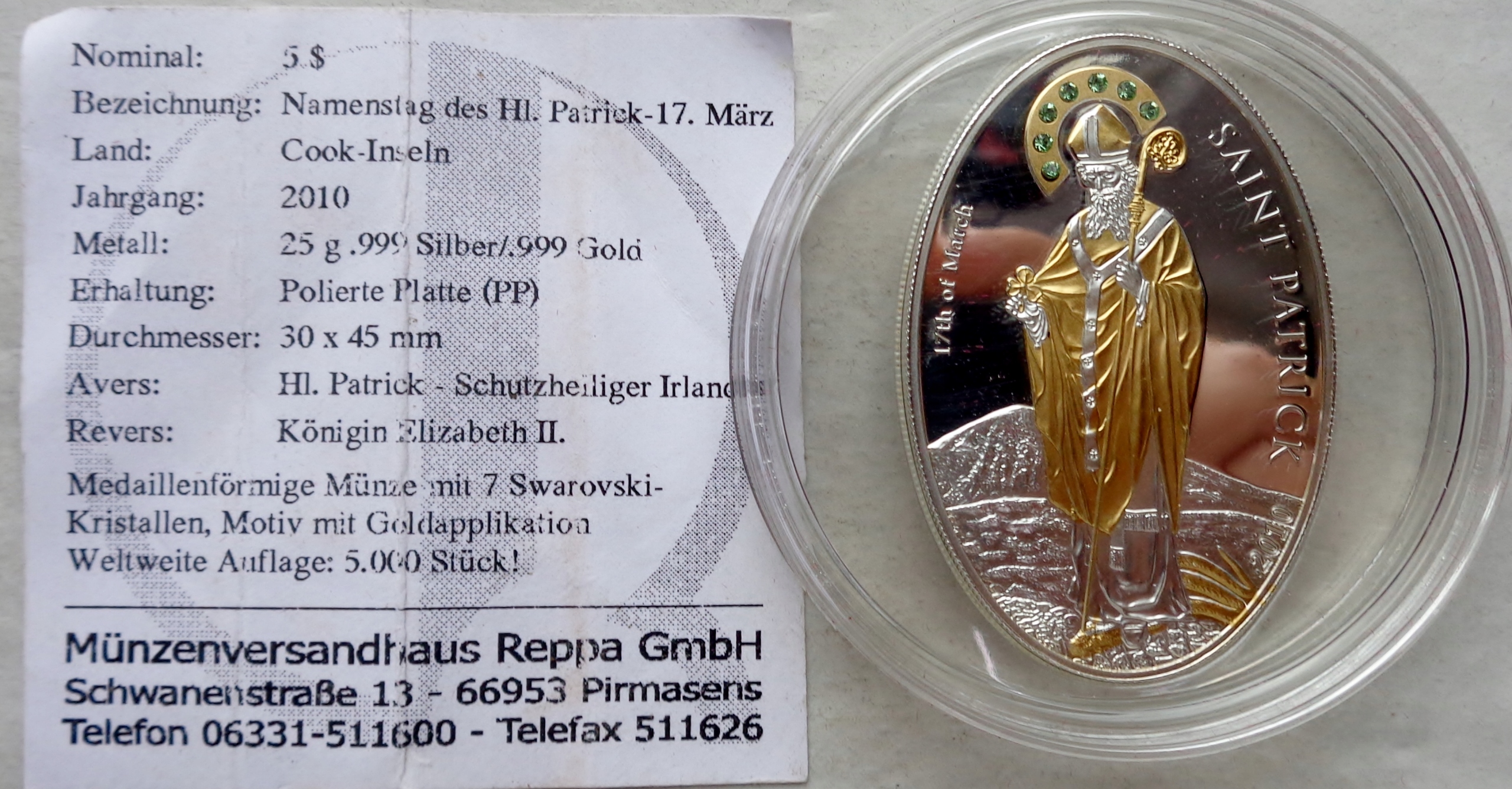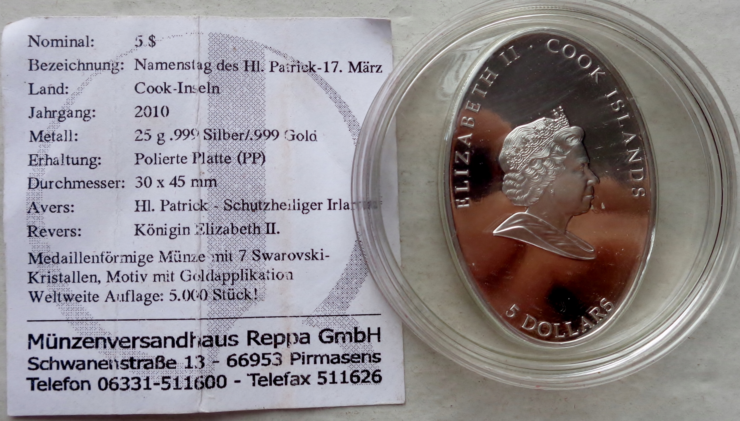 Острови Кука - $5 - 2010 - Святий Патрік - срібло