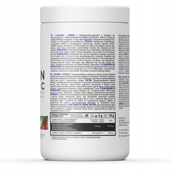 OstroVit Коллаген + Витамин С — это порошковая пищевая добавка высочайшего качества, созданная во вкусовых вариантах линии OstroVit True Taste. Кондиционер, предназначенный для физически активных людей и тех, у кого повышенная потребность в коллагене и витамине С. Добавление L-аскорбиновой кислоты способствует еще более благоприятному синтезу коллагена, обеспечивая правильное функционирование хрящей, кожи, десен и кровеносных сосудов в нашем организме.