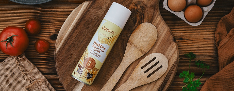 Масляный спрей со вкусом масла OstroVit – предложение для всех любителей кулинарии, любящих кулинарию. вкус сливочного масла и хотят позаботиться о своем здоровье и фигуре. Продукт с точным дозатором позволяет легко сократить количество используемого жира. Сочетая свойства рапсового масла и добавляя маслянистый вкус, спрей хорошо сочетается со всеми ингредиентами, которые идеально сочетаются с маслом, например, яйцами, овощами, стейками.