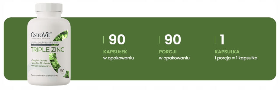 - Красивый внешний вид - По какой-то причине цинк иногда называют минералом красоты и молодости. Благодаря тройным цинковым капсулам Ostrovit вы можете позаботиться о своей коже, волосах и ногтях и сделать их состояние для улучшения видимым.
