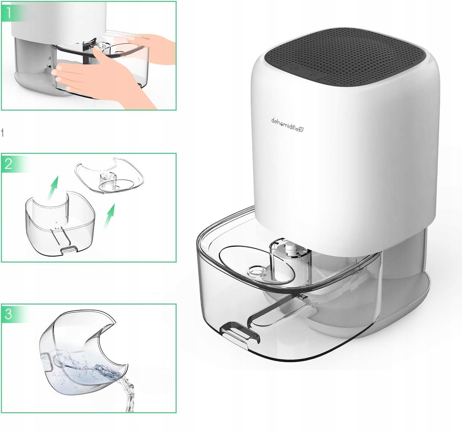 Благодаря технологии Пельтье (нет необходимости в компрессоре) емкость резервуара для воды нашего небольшого осушителя составляет до 1000 мл. Он может удалять до 450 мл воды в день при температуре 30℃ и относительной влажности 80%. Идеально подходит для спален, офисов, ванных комнат, фургонов и гаражей.
