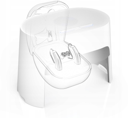 Умная конструкция позволяет сушить и дезинфицировать слуховые аппараты, одновременно заряжая их. Независимо от конструкции зарядной станции для слуховых аппаратов, под крышкой осушителя Dry-Cap UV 3® найдется место для всех имеющихся в продаже слуховых аппаратов. На зарядных станциях с открывающейся крышкой крышка остается открытой и находится снаружи осушителя, позволяя потоку воздуха и ультрафиолетовому излучению точно достигать слуховых аппаратов.