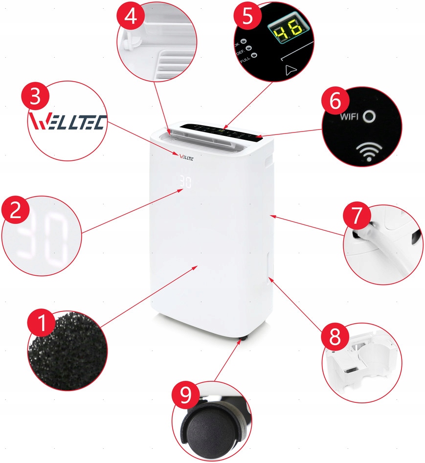 WELLTEC DHN30 ОСУШИТЕЛЬ ВОЗДУХА 3в1 до 60м² 30л/24ч WiFi НАСОС HEPA H13