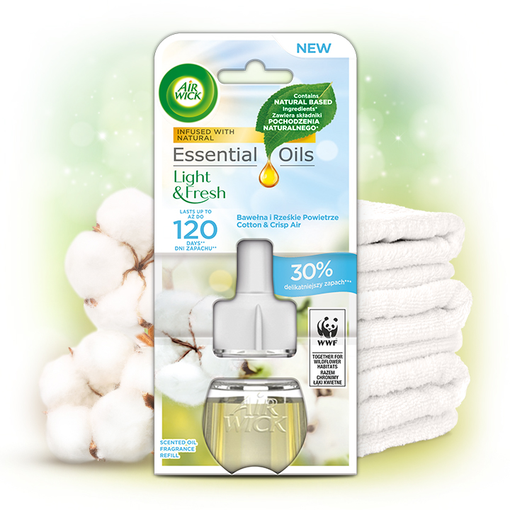 Новые ароматы Air Wick Light & Fresh созданы специально для создания тонких обонятельных ощущений. Они на 30 % легче обычных ароматов электрических освежителей воздуха Air Wick. Новая формула ароматических масел содержит ингредиенты натурального происхождения и обогащена натуральными эфирными маслами, в чем и заключается секрет их подлинного аромата.