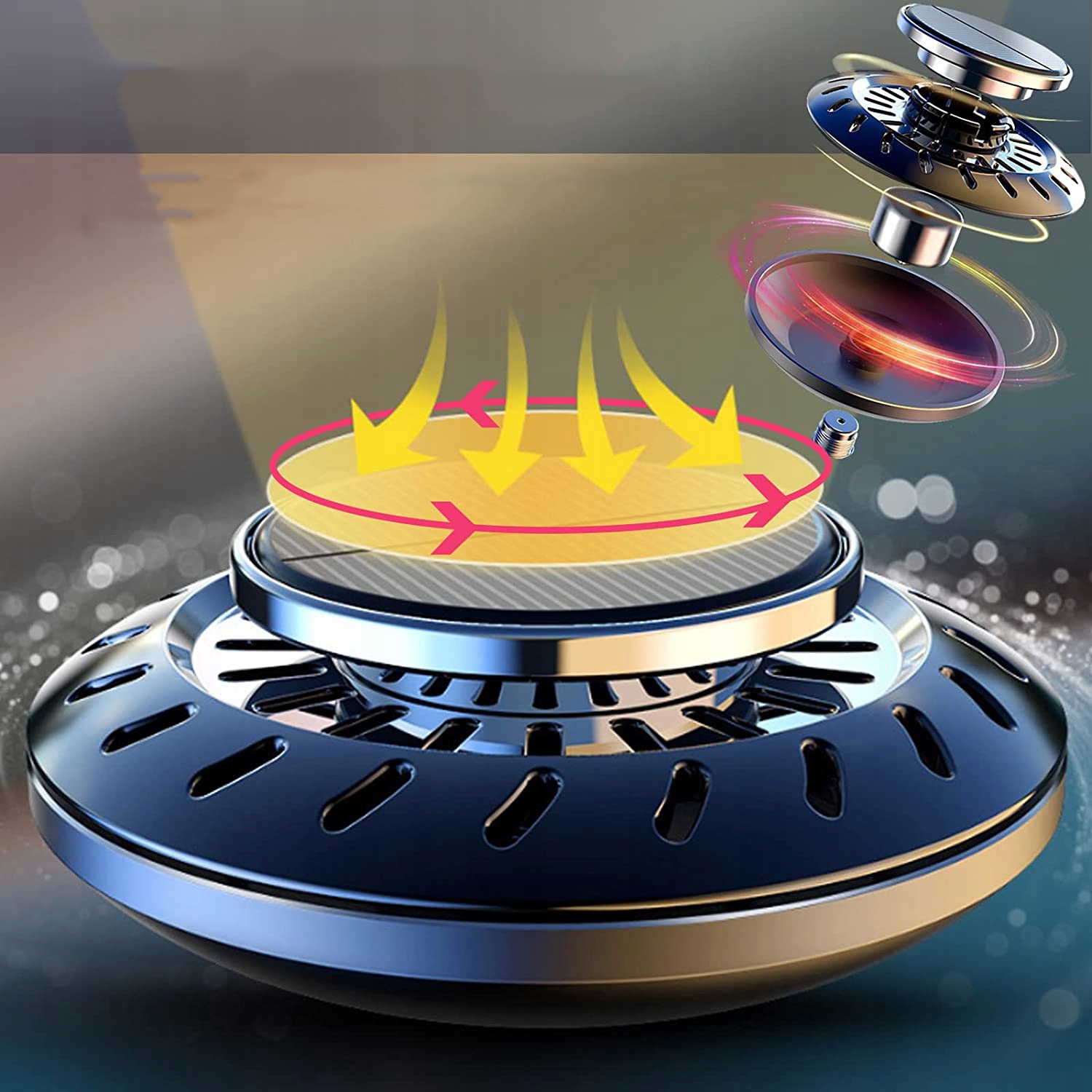 🚗【Не мешает ваше видение】 Солнечный аромадиффузор с внешним видом летающей тарелки, компактный дизайн, не закрывающий поле зрения водителя и не создающий шума при повороте.