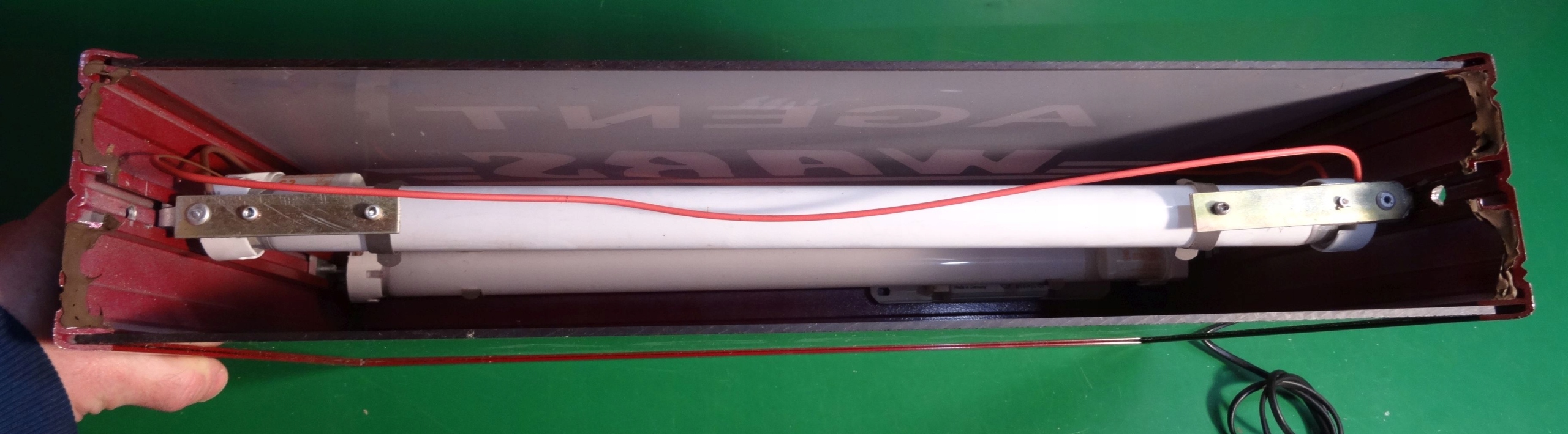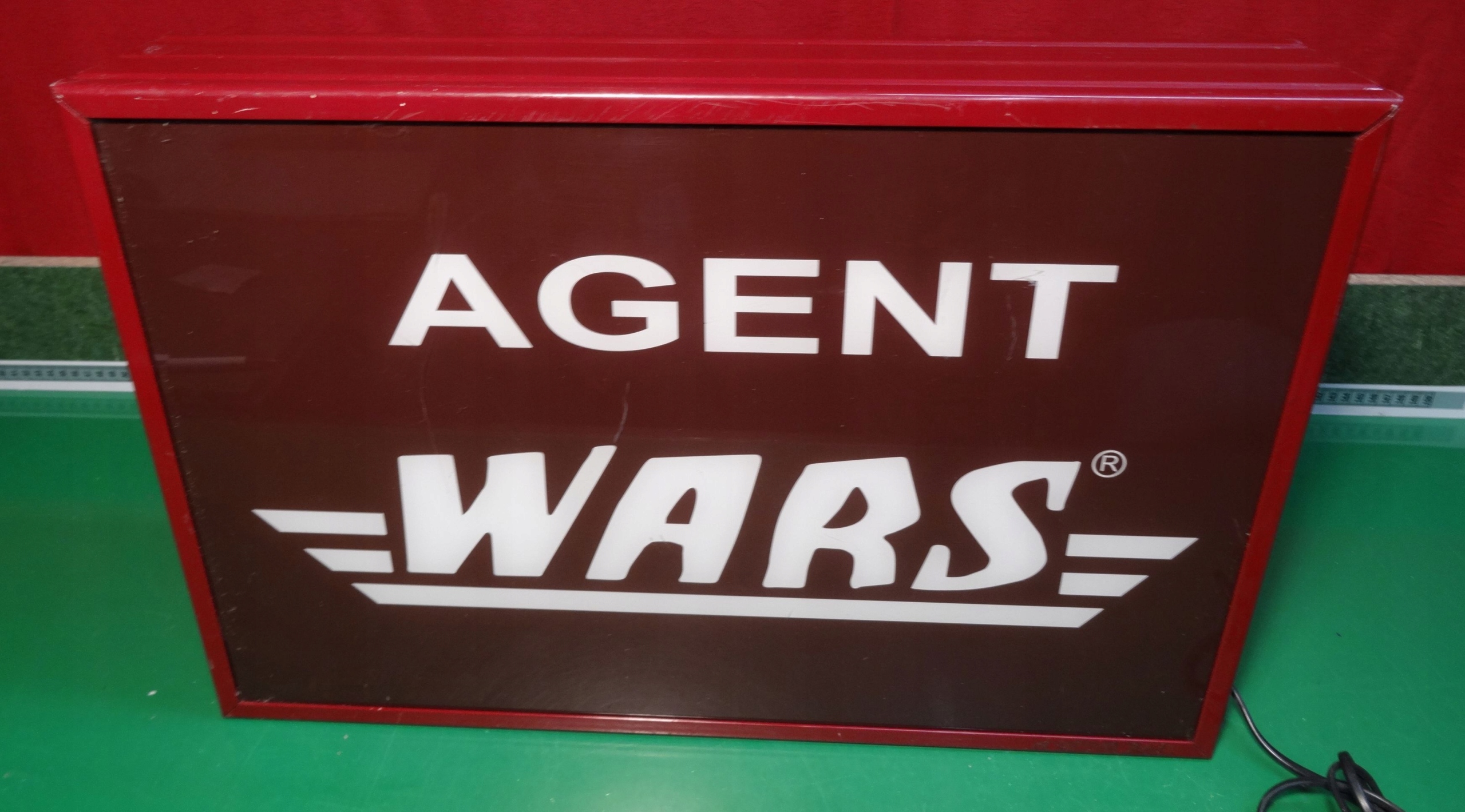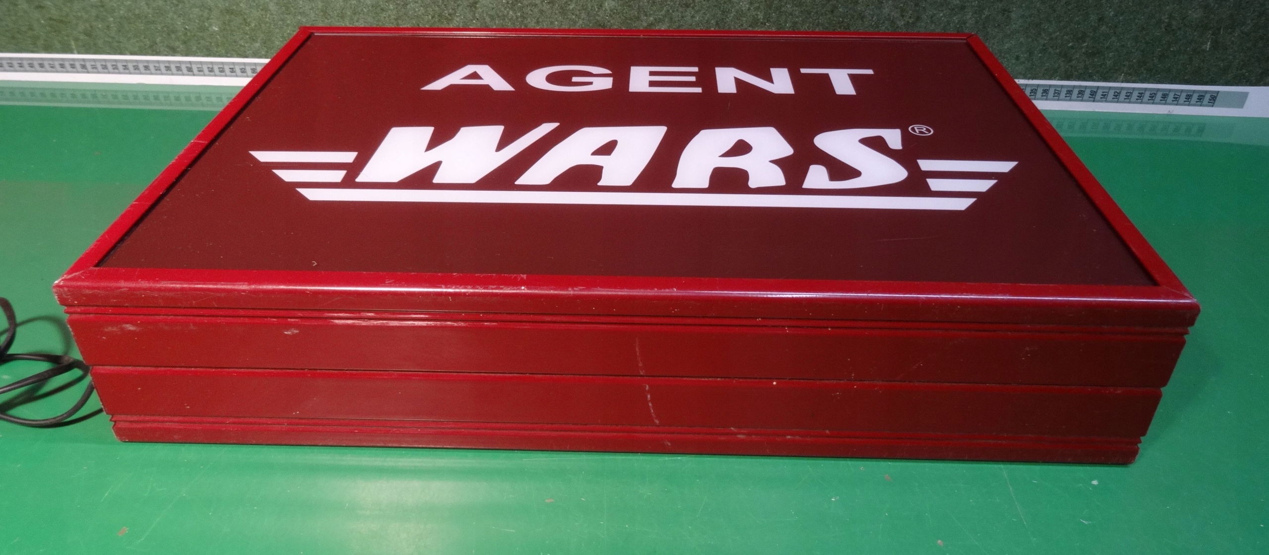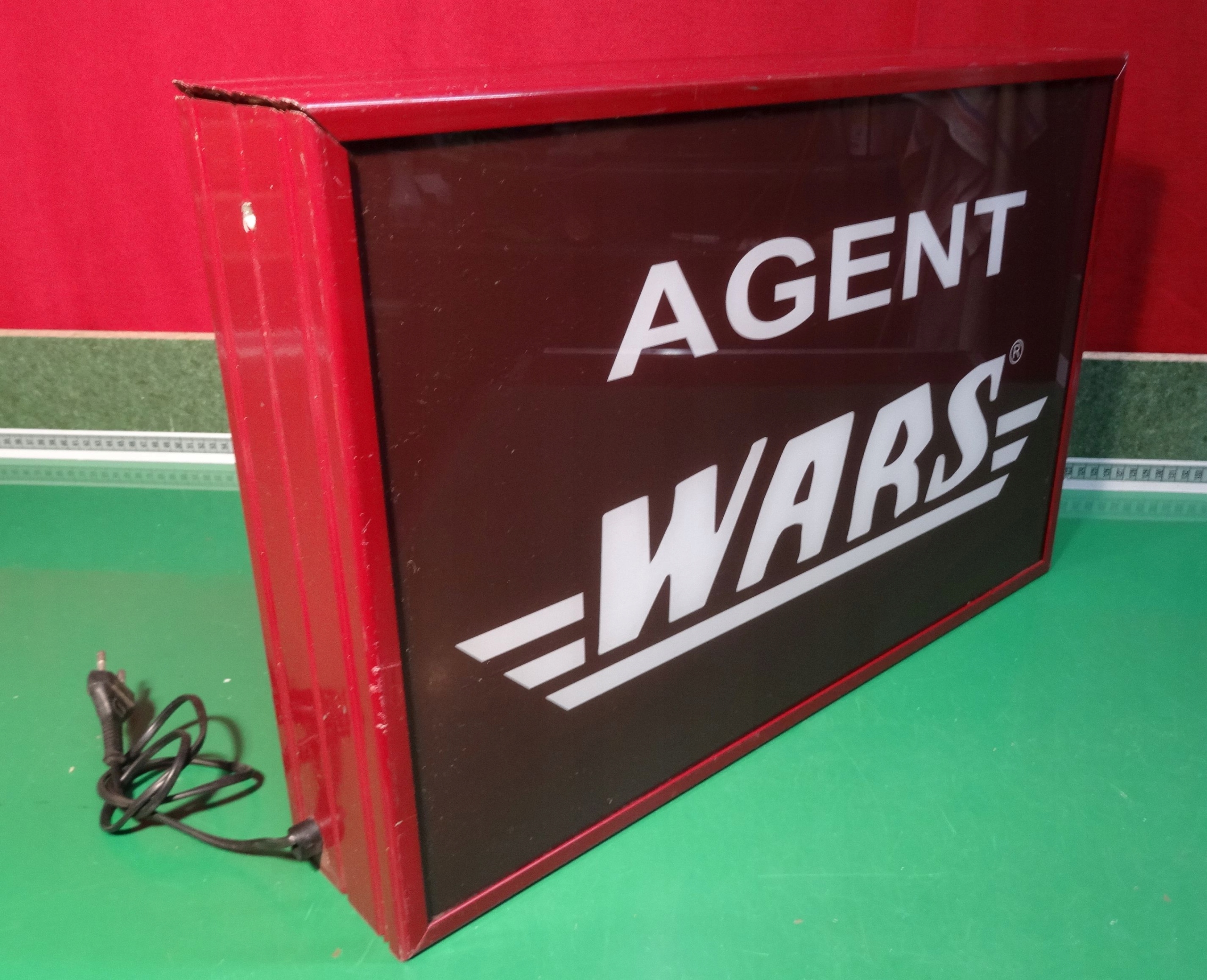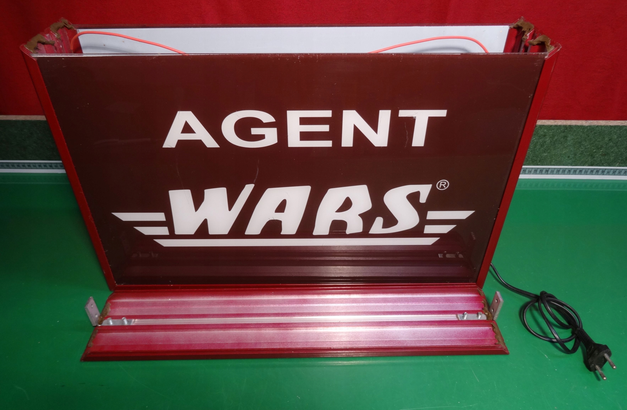 Неон, освещенный рекламный агент Wars. Стороны рекламы, сделанные из окрашенных алюминиевых профилей, рекламы плексигласа, в середине подсветки с двумя светями. >