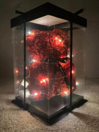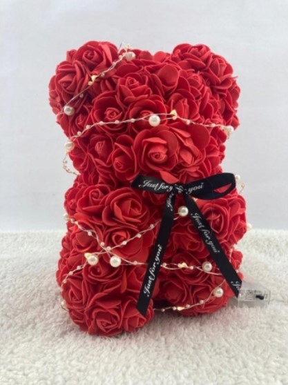 Освещенный светодиодный плюшевый мишка - 25 см - Красивый Святой медведь, сделанный из роз