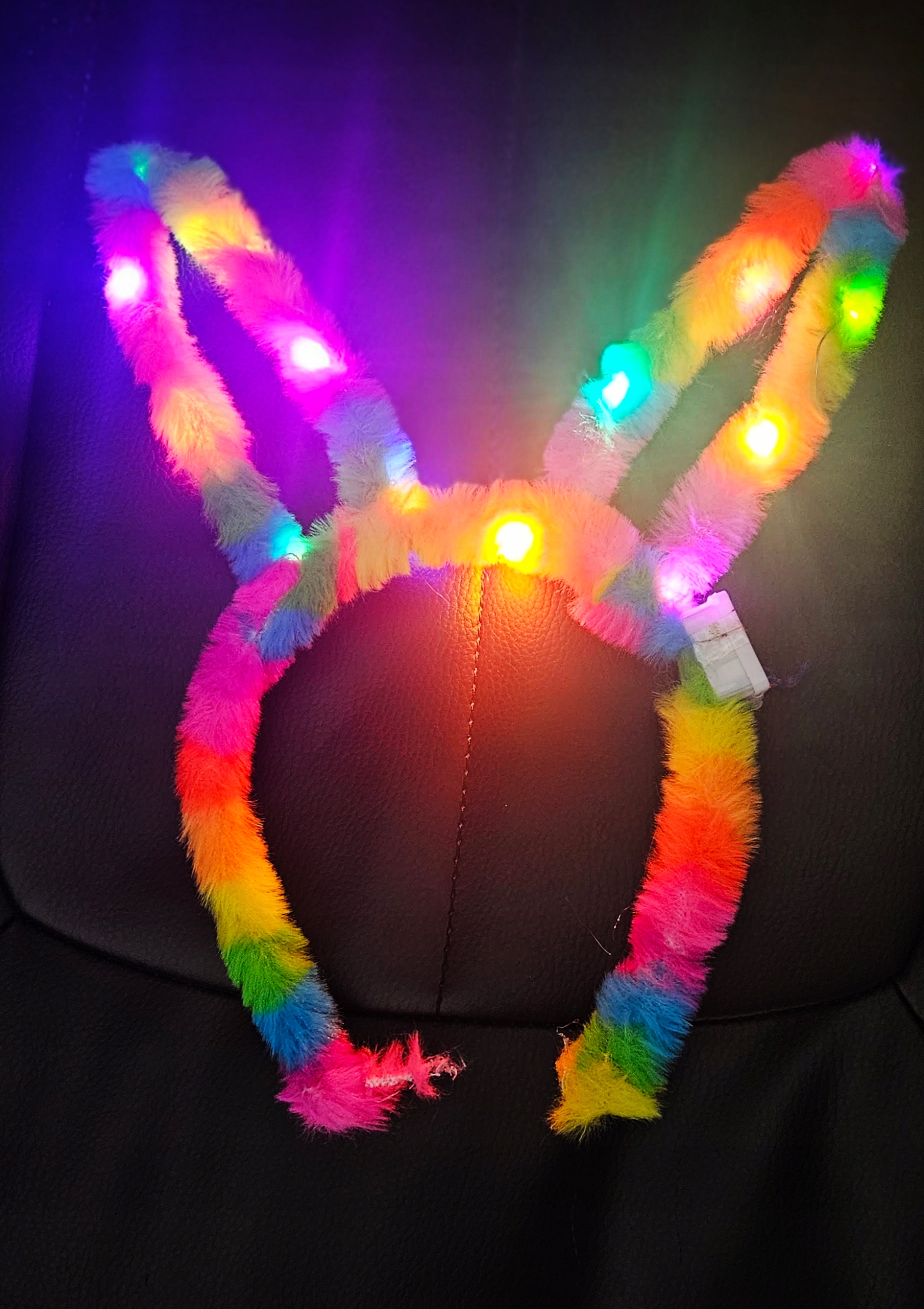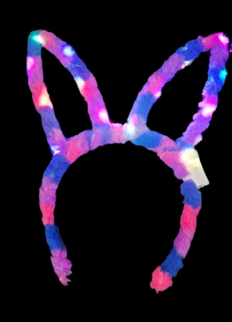ОСВІТЛЕННЯ ПОВ'ЯЗКА НА ГОЛОВУ ВОЛОХАТА ВЕСЕЛКА З ВУХАМИ КРОЛЯ 26CM E2302 EMAJ ОПТОМ