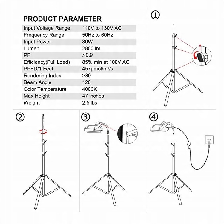 Светодиодное освещение с полным спектром: свет для выращивания излучает сильный свет с полным 30 Вт спектром, который имитирует естественный солнечный свет, способствуя энергетическому росту на каждом этапе - от прорастания до цветения.