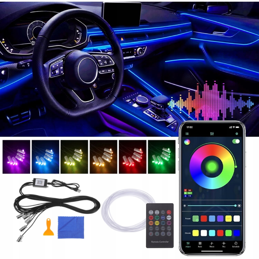 ОСВІТЛЕННЯ САЛОНУ АВТОМОБІЛЯ LED RGB ОПТИЧНЕ ВОЛОКНО ОСВІТНЄ СВІТЛО 5-8M ЗАСТОСУВАННЯ