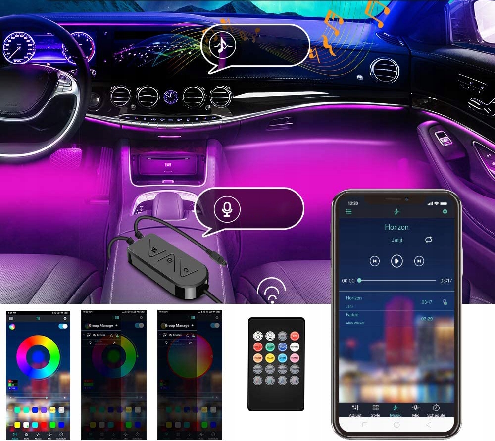 ОСВІТЛЕННЯ САЛОНУ АВТОМОБІЛЯ RGB LED КАБІНА ДОДАТОК ПУЛЬТ ДИСТАНЦІЙНОГО КЕРУВАННЯ