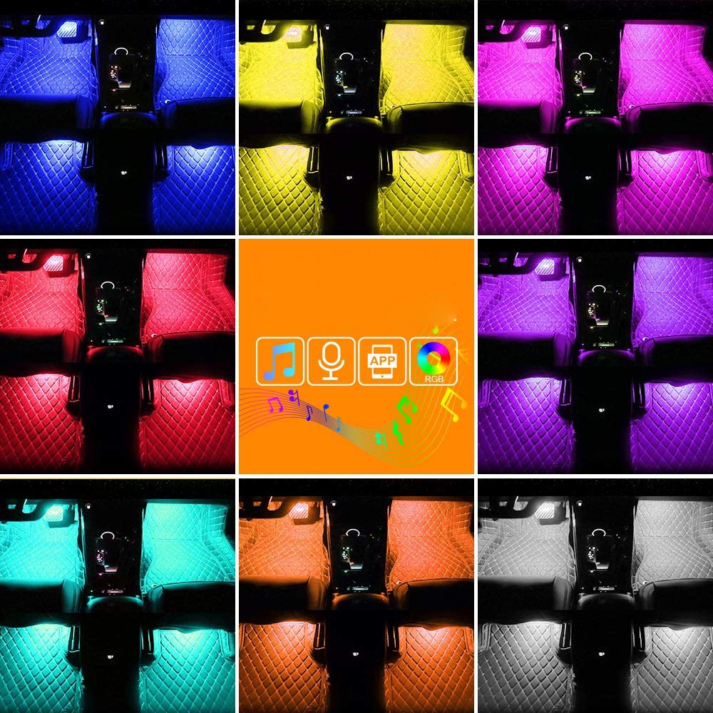 Внутреннее освещение автомобиля Speclux Bluetooth 72 светодиода, 4 светодиодные ленты, включая автомобильное зарядное устройство, неоновые наборы Световые полосы RGB с функцией смены музыки Беспроводной радиочастотный пульт дистанционного управления Набор атмосферного звука
