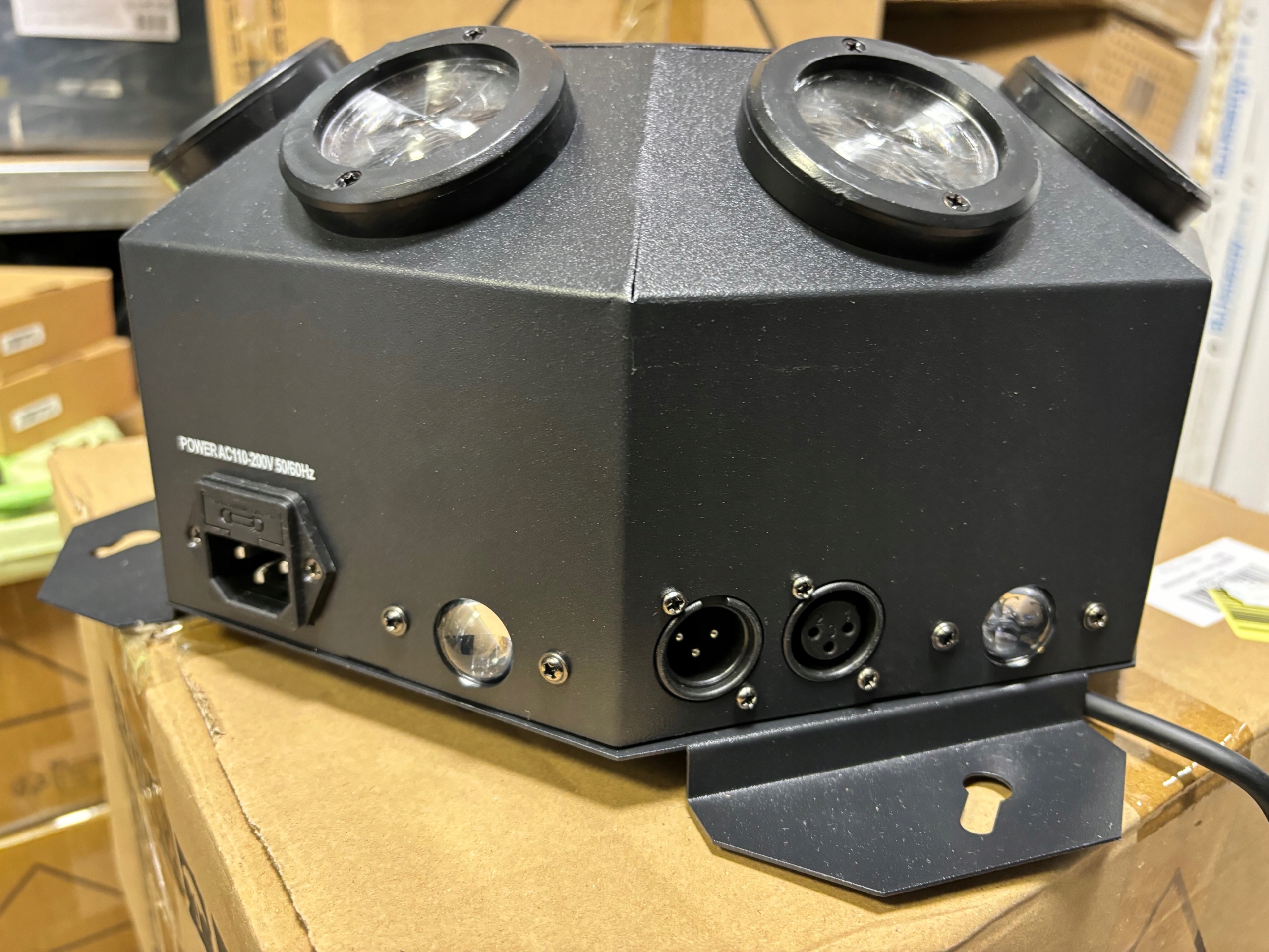 Долгосрочное обслуживание. Жизнь: в сценическом освещении используется конструкция из многослойного материала - огнестойкий пластик + корпус из алюминиевого сплава + железо. Встроенный высокоэффективный вентилятор эффективно рассеивает тепло и продлевает срок службы сценического освещения.
