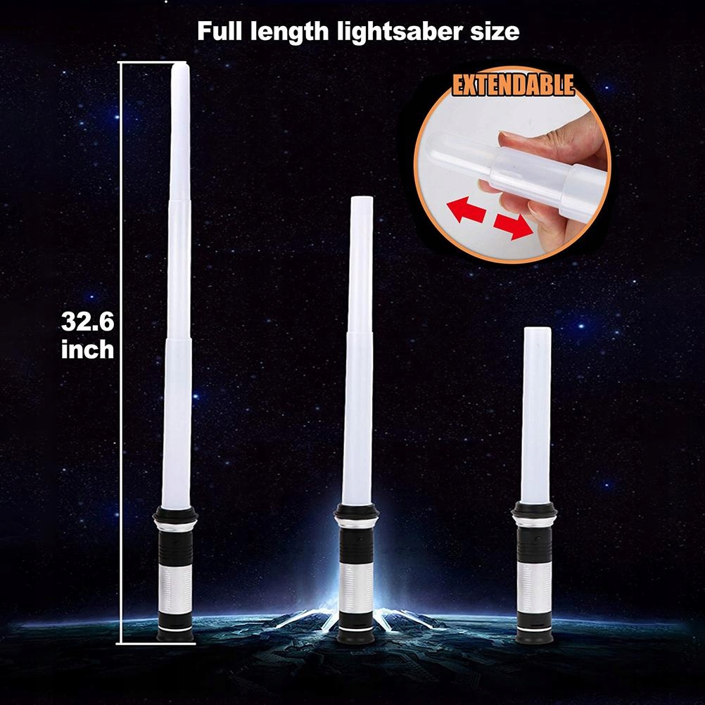 1. 1. Светодиодный световой меч «два в одном»: 2 выдвижных световых меча (длина от 16,9 до 32,6 дюймов) с удобными ручками. Два световых меча можно соединить с помощью разъема, чтобы получить более длинный световой меч.