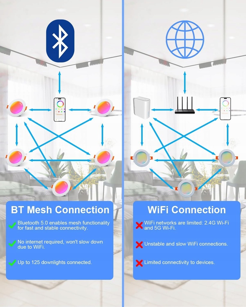 ✅Идеальное решение для нескольких источников света: Потолочные светильники для кухни, оснащенные чипом Bluetooth 5.0, который обеспечивает автоматическое взаимодействие между источниками света. Это помогает преодолеть недостатки светильников с дистанционным управлением и светильников WIFI как по расстоянию управления, так и по количеству светильников.
