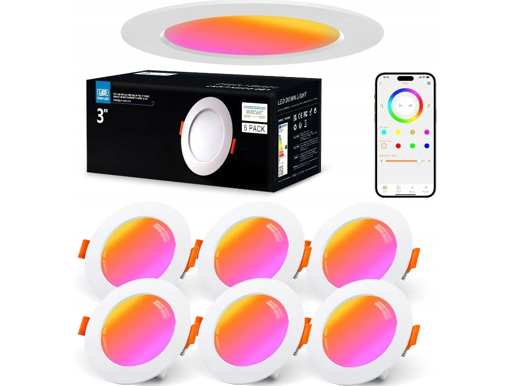 ✅Умные светодиодные потолочные светильники VARICART для потолка Alexa, 10 Вт Bluetooth RGB, точечные светильники с изменением цвета, встраиваемые потолочные светильники с регулируемой яркостью, дневной свет, белый 5000K, управление через приложение для гостиной, спальни, 6 шт.