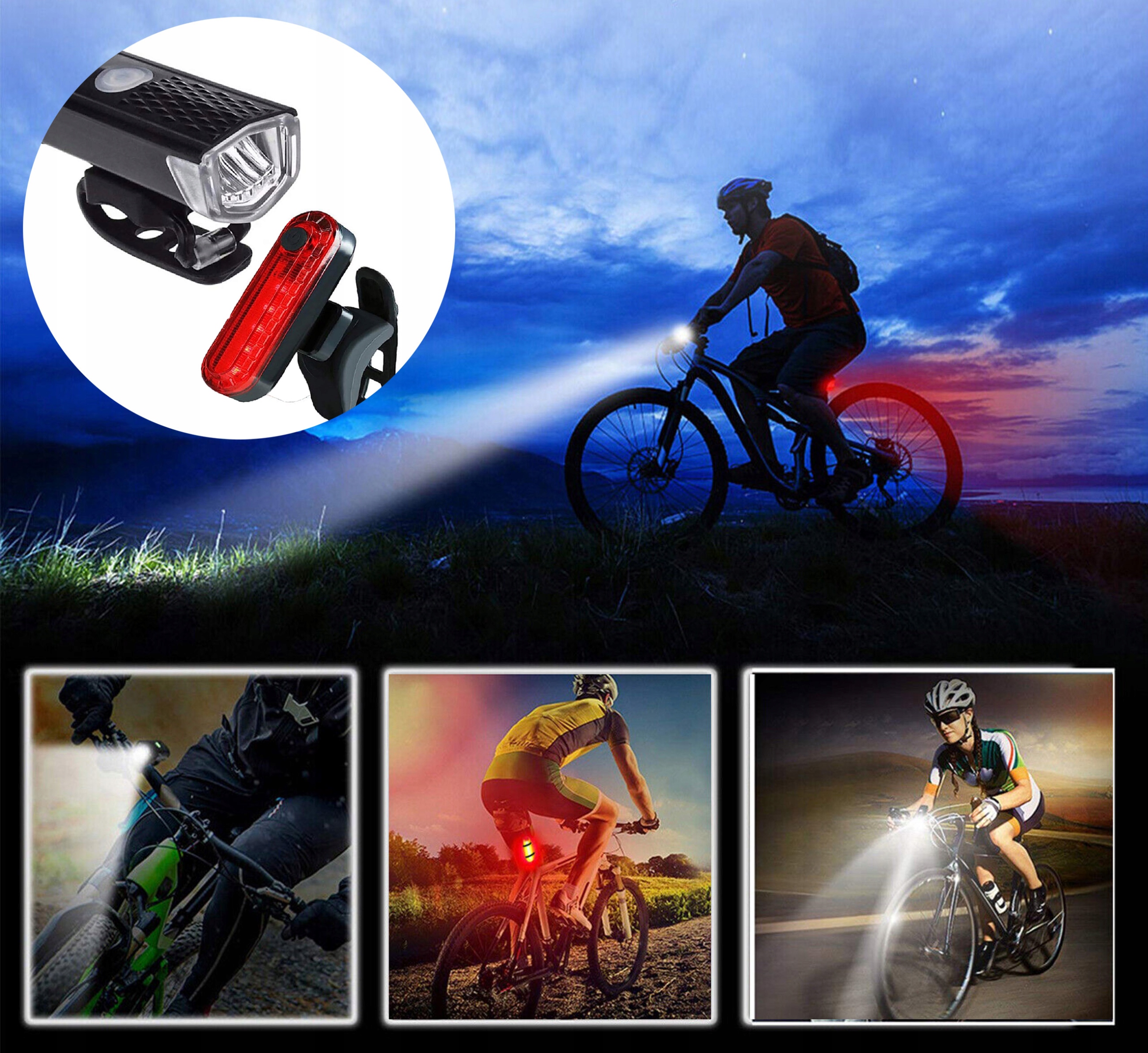 СВЕТОДИОДНАЯ ВЕЛОСИПЕДНАЯ ФОНАРЬ ПЕРЕДНЯЯ + ЗАДНЯЯ ФОНАРЬ АККУМУЛЯТОРА USB