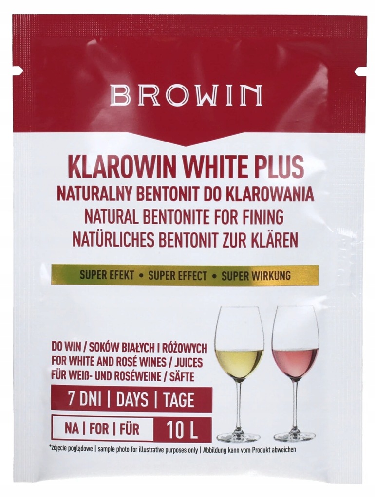 Одна упаковка Klarowina 8 г White Plus достаточно для осветления 10 л вина или сока.
