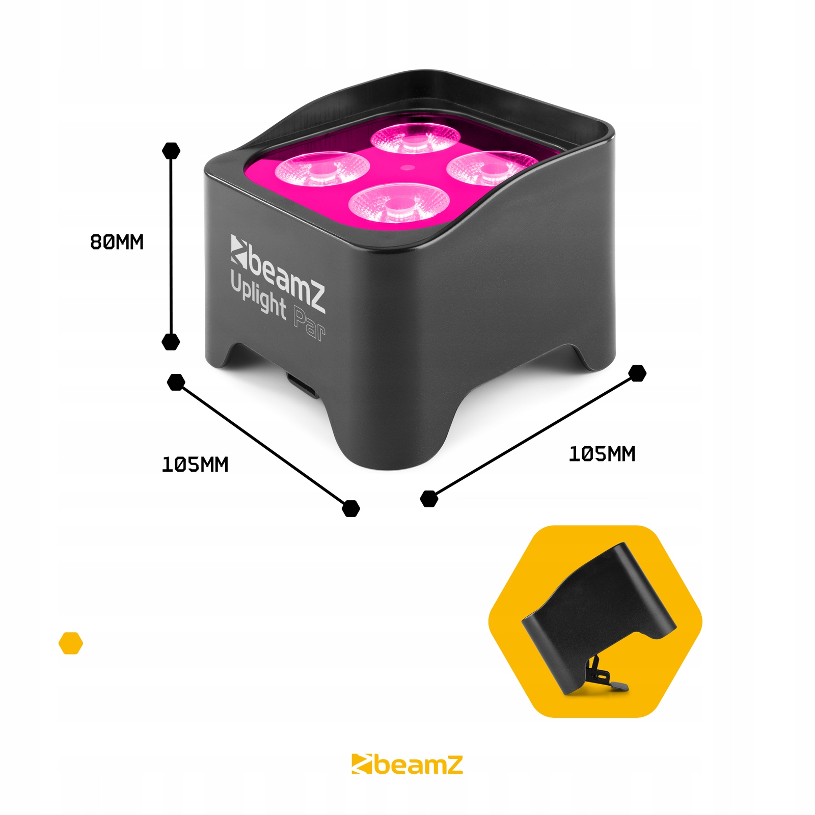 - 4 светодиода RGB-UV 4-в-1 мощностью 4 Вт.