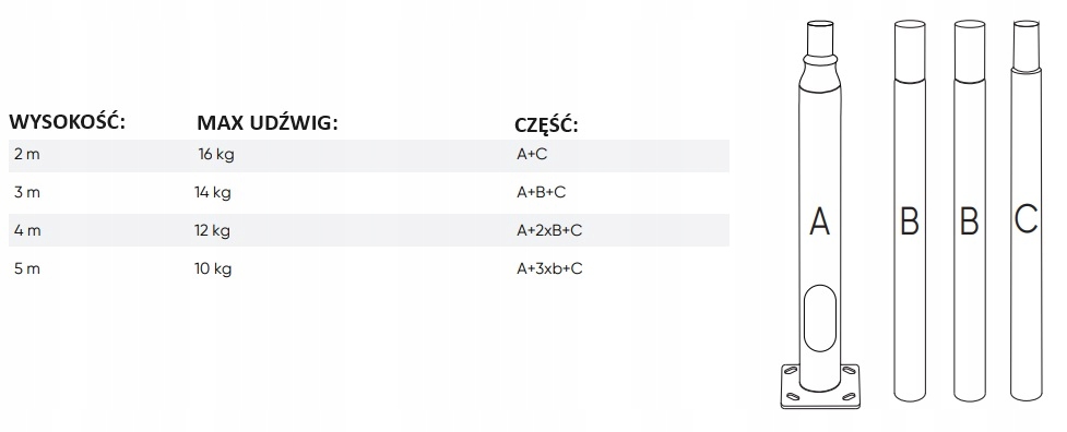 Столб можно регулировать благодаря съемным частей или дополнительного удлинителя на 1 метр опоры.