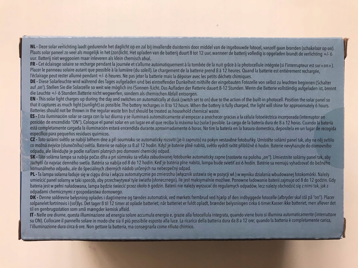 - Питается от солнечной энергии и автоматически включается в темноте.