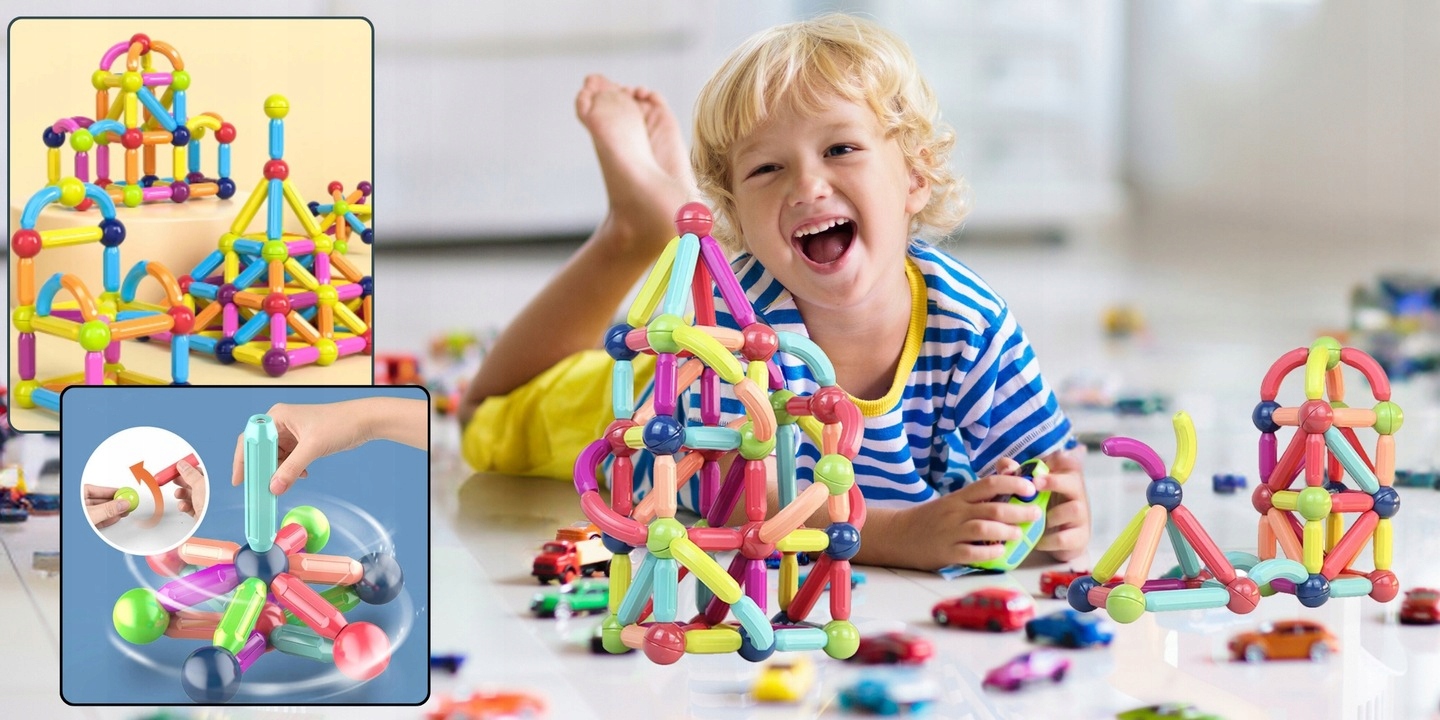 блоки оснащены солидными, встроенными магнитами b>, которые позволяют легко и стабильно комбинации элементов под определенным углом. Ваш ребенок может создать как простые, так и более сложные трехмерные конструкции , при разработке пространственного воображения. магниты полностью безопасны, обеспечивая долговечность каждого здания.
