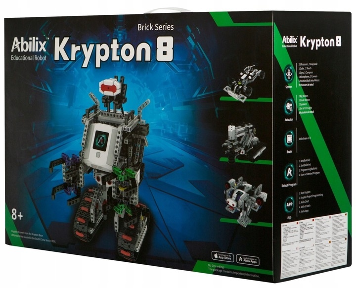 С самым продвинутым образовательным роботом Abilix Krypton 8 Вы можете изучать программирование, независимо от возраста. Развивайте креативность, логическое мышление или математические навыки, вашего или вашего ребенка с помощью этого чрезвычайно интересного устройства. Многие варианты конфигурации и поведенческого программирования заставит роботу никогда не будет скучно. Krypton 8 - это набор, который позволяет создавать до 50 различных конструкций.