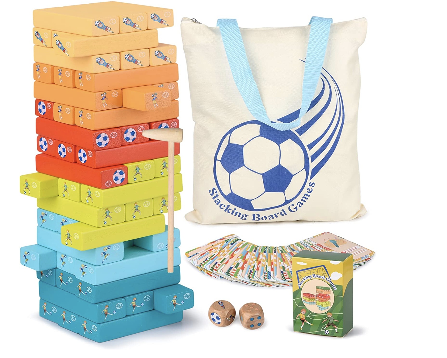 Педагогическая воскресная игра для детей с 3 лет, деревянная башня с футбольным мотивом, подарок для девочек, мальчиков, красочные блоки для укладки кубиков, игровых карт, сумки, мини -молоток h1>
