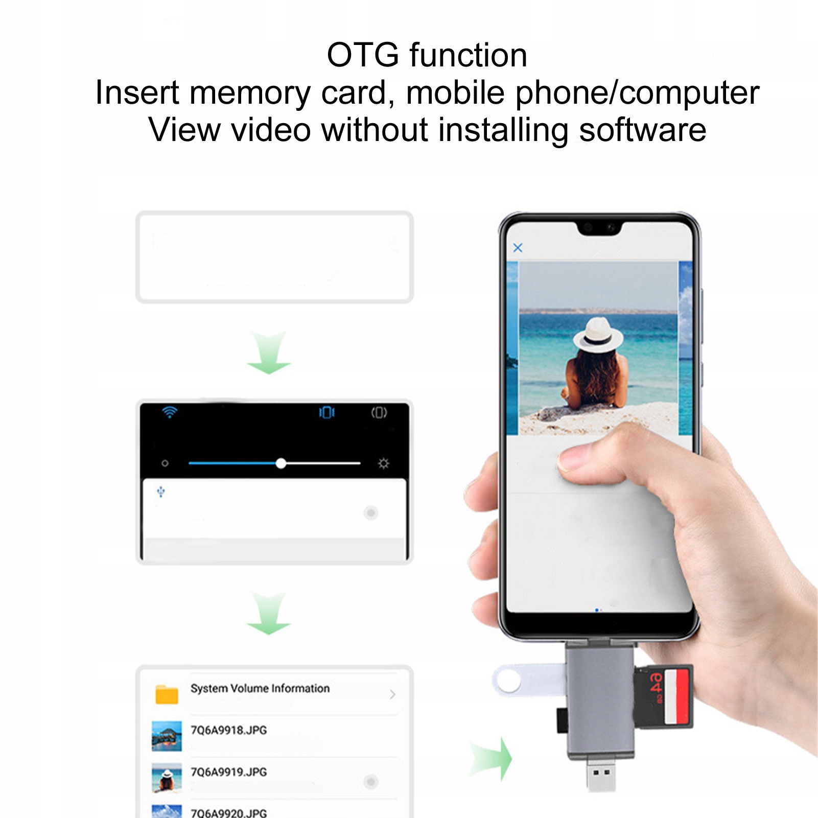 1. Поддержка функции OTG, вставка карты памяти, мобильный телефон/компьютер могут напрямую смотреть видео без установки программного обеспечения