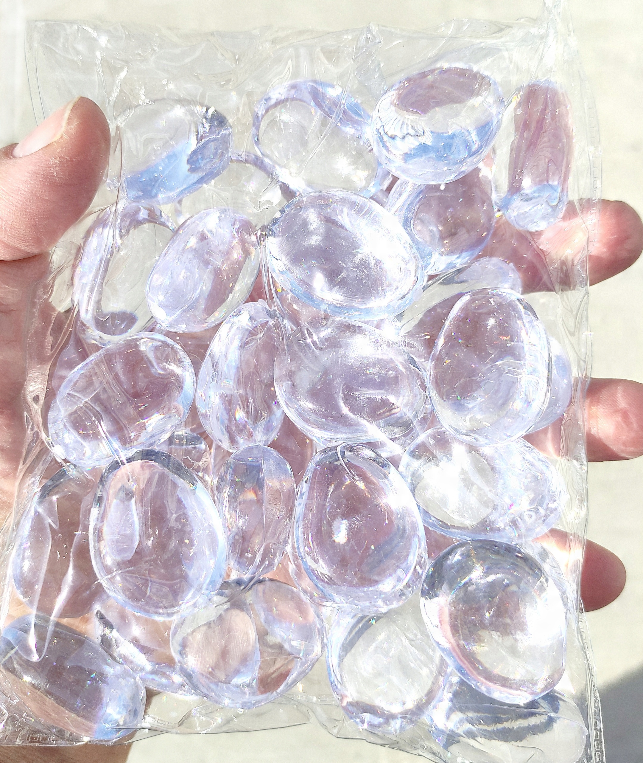 МЫ ПРЕДЛАГАЕМ КАМНИ, ПОКРЫТЫЕ СИНТЕТИЧЕСКИМ СТЕКЛОМ, ПРОЗРАЧНОГО ЦВЕТА, 38 ШТ.