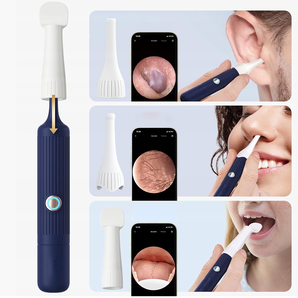 Оснащен 5 насадками для чистки, включая пинцет и скребок, подходят как для сухих, так и для влажных ушных каналов, подходят для взрослых и детей.