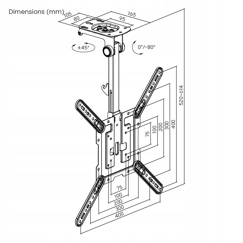 ⭐ подходит всем телевизорам от 23 дюймов до 55 дюймов весом до 20 кг. H2> ✅ Идеально подходит для наклонных наклонных потолков h2>