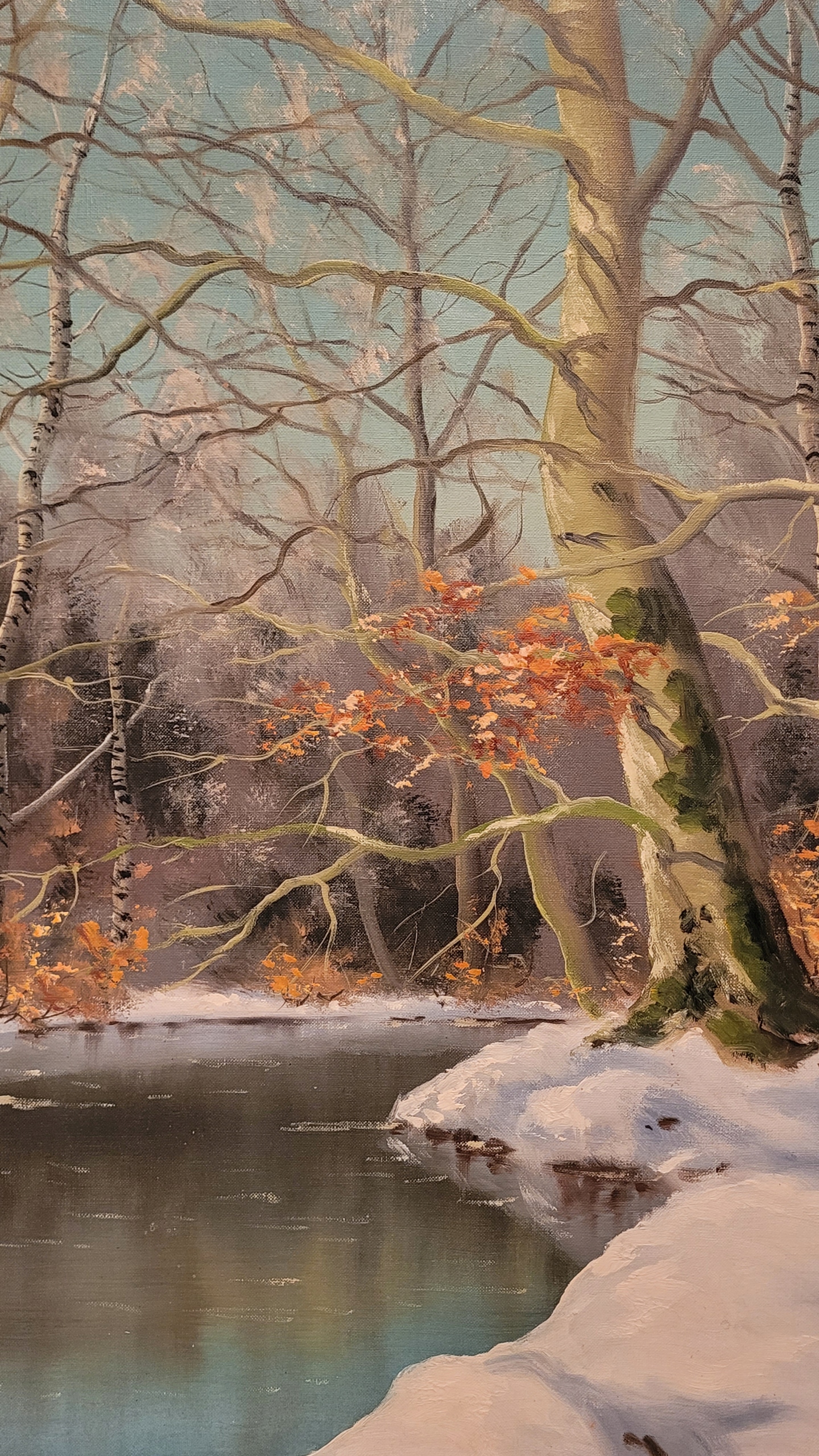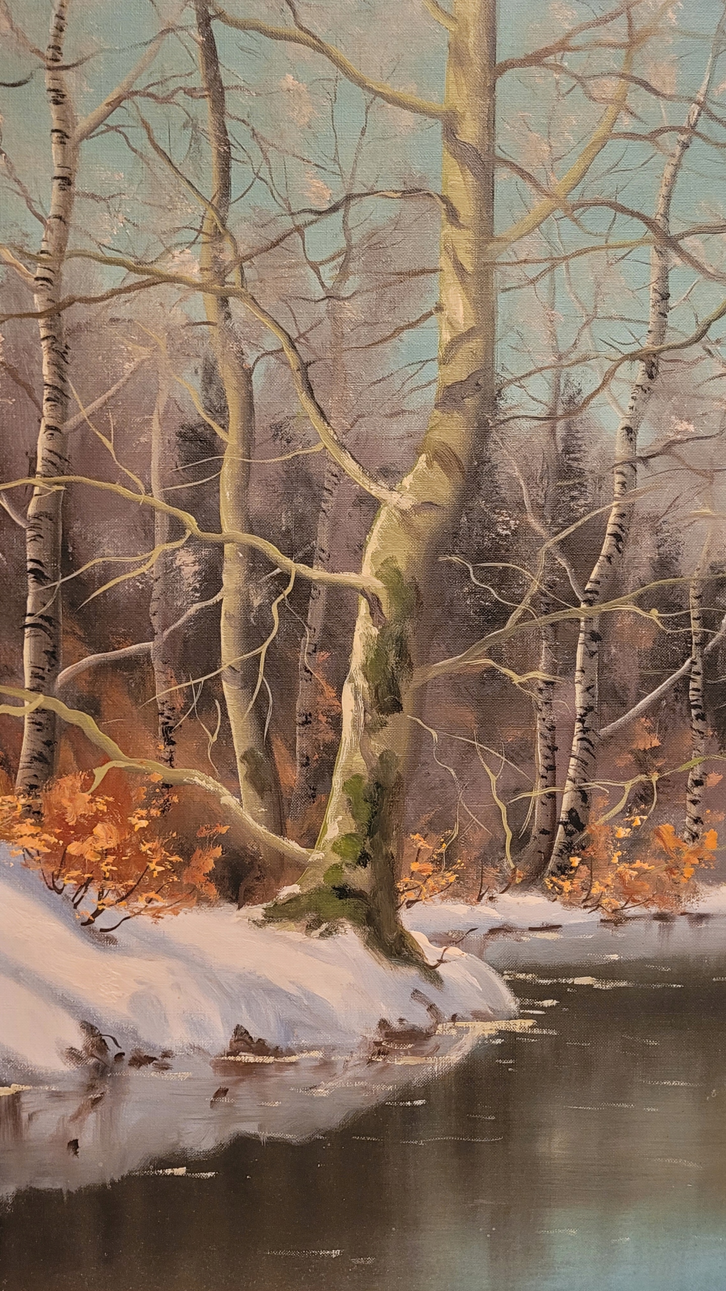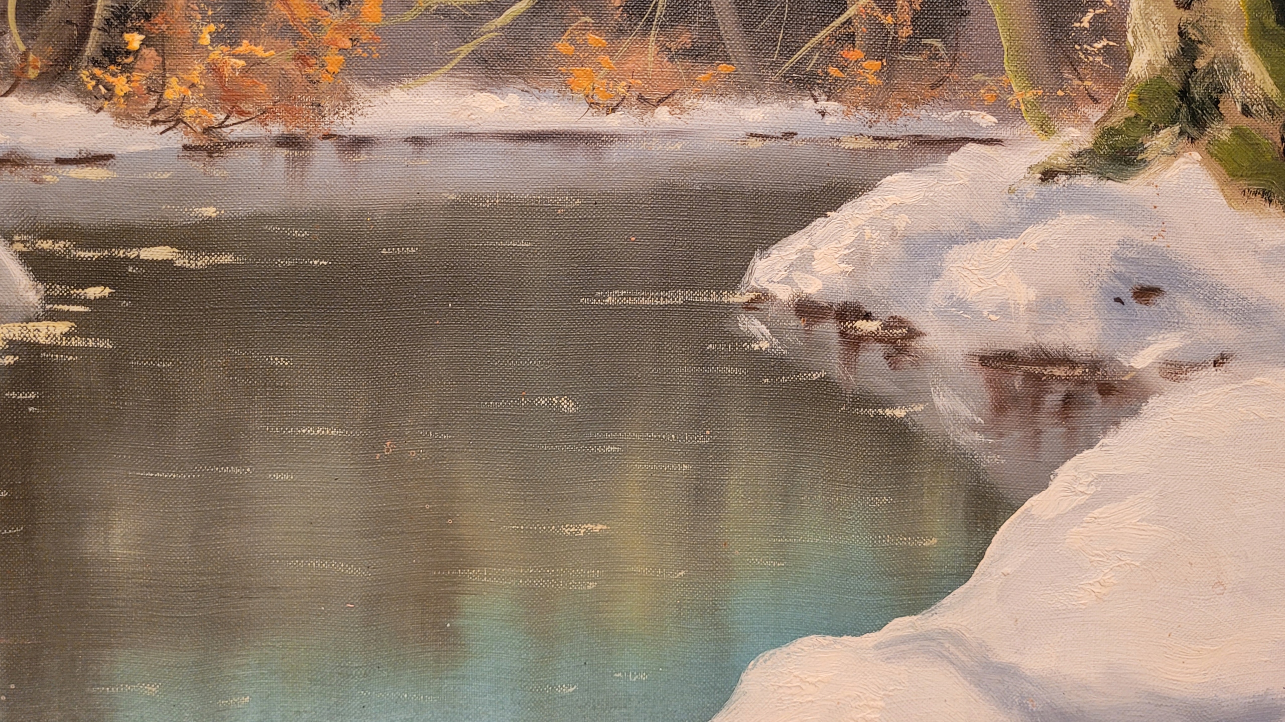 Предмет продажи - красивая, старинная картина маслом "РЕКА ЗИМОЙ".