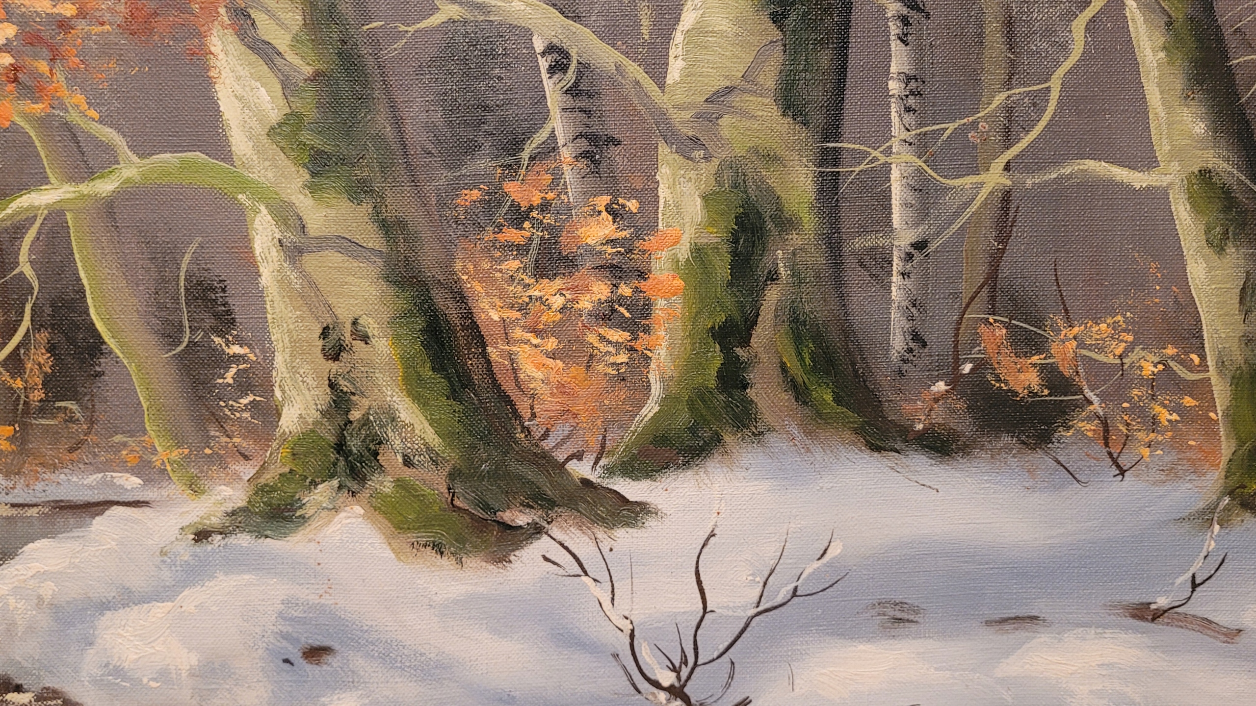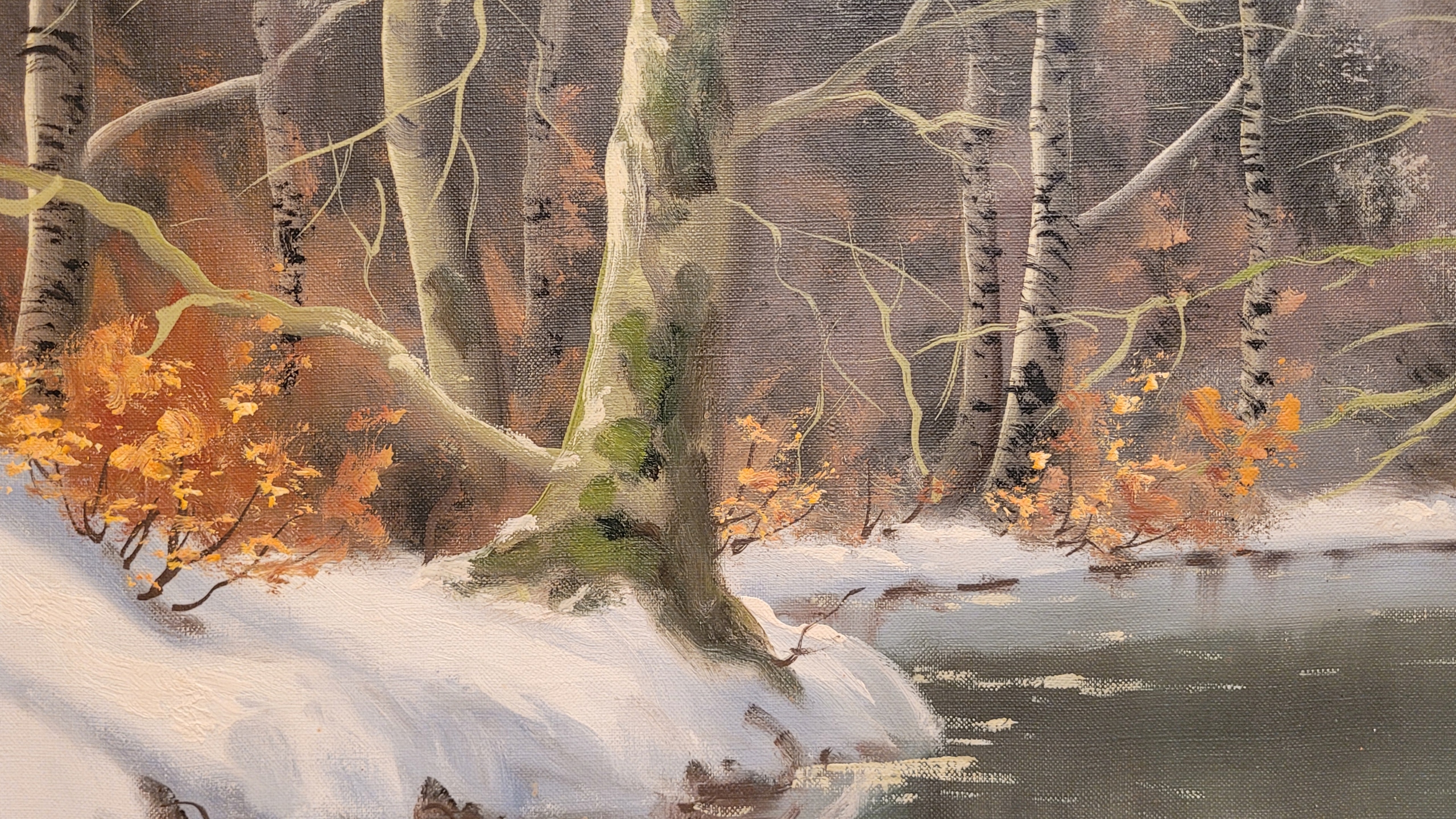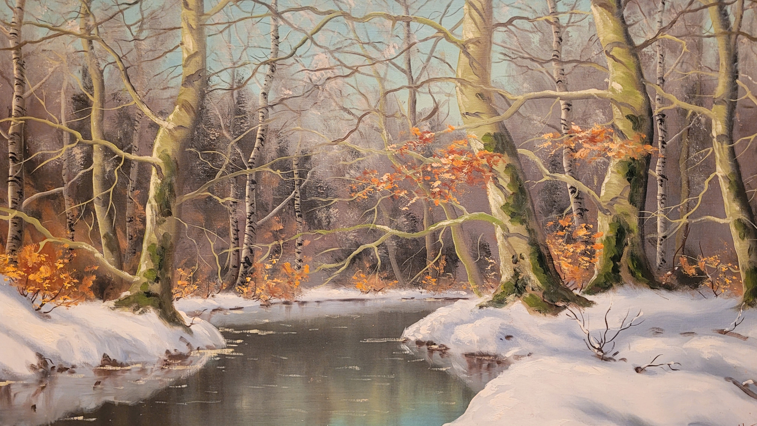 Предмет продажи - красивая, старинная картина маслом "РЕКА ЗИМОЙ".
