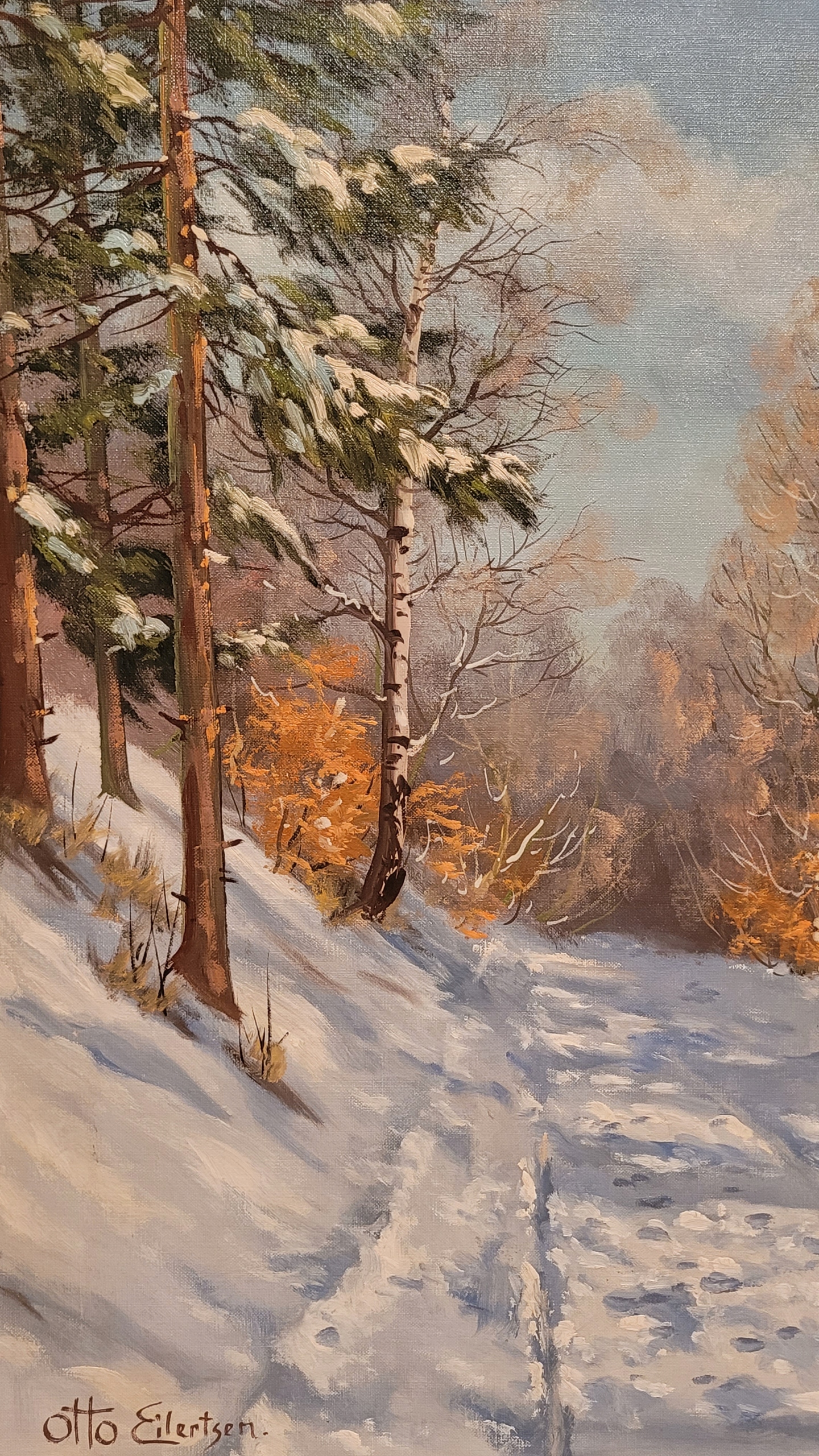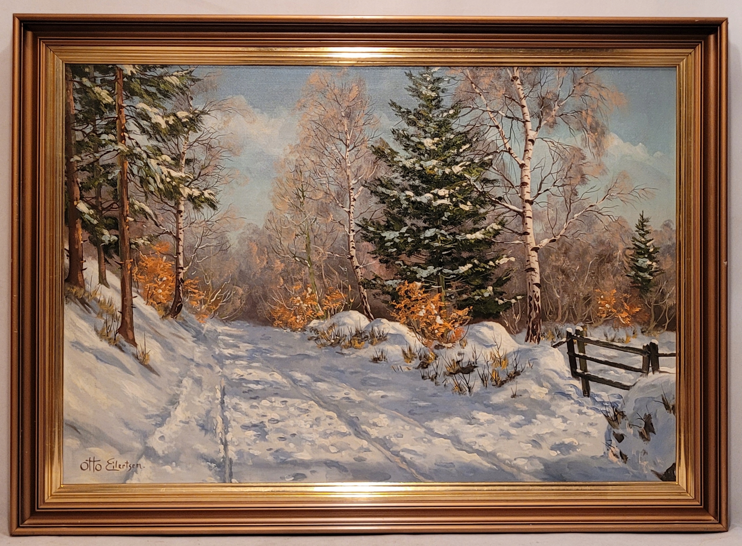 ОТТО ЭЙЛЕРЦЕН (1908 – 1990) – «ЗИМНИЙ ПЕЙЗАЖ», прекрасная картина маслом.