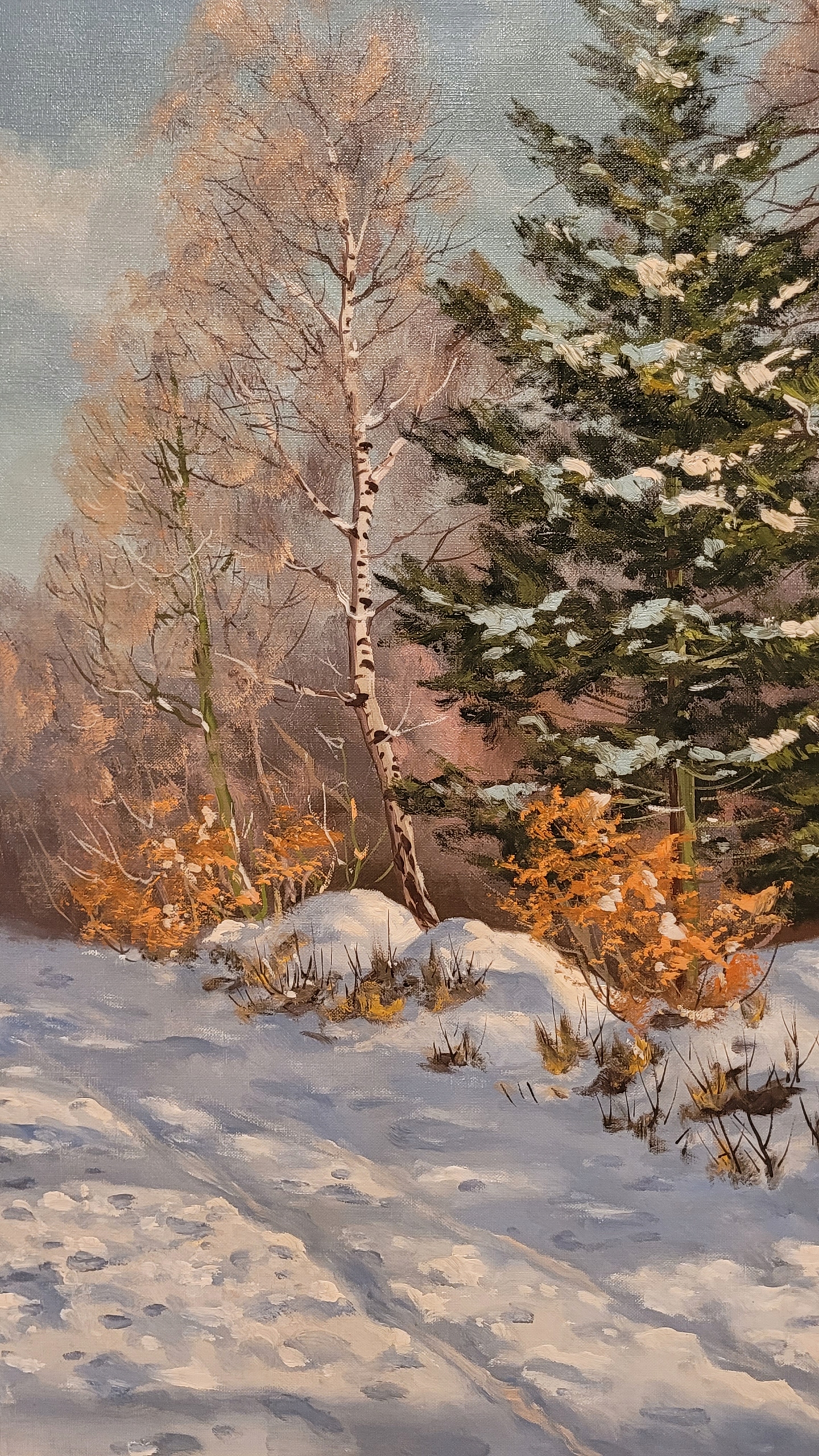 Предмет продажи - красивая, старинная картина маслом "ЗИМНИЙ ПЕЙЗАЖ".