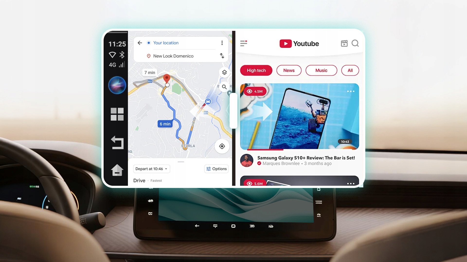 Вы можете использовать два приложения одновременно – например. навигация и YouTube. Возможность плавного изменения соотношения сторон (3:7, 5:5, 7:3) позволяет настроить раскладку под свои нужды, повышая комфорт и безопасность во время движения. Благодаря этому водитель имеет полный контроль над тем, что он хочет видеть в данный момент, без необходимости переключать приложения.