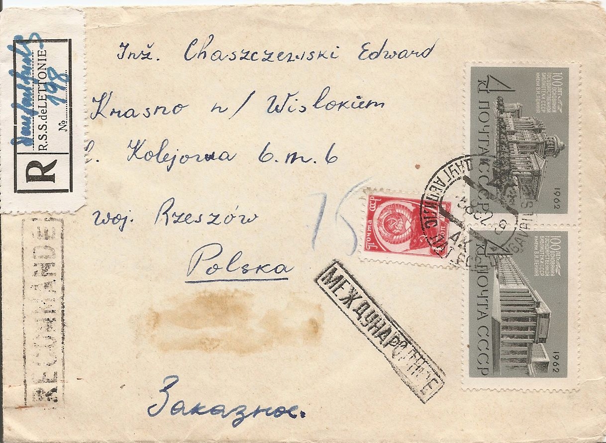 ŁOTWA -KROSNO -koperta polecony erka znaczki obieg 1962 rok